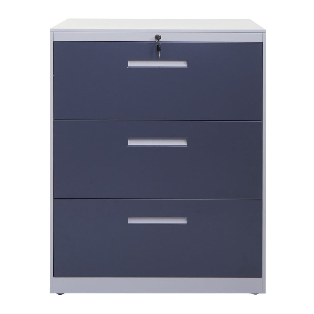 Armoire meuble de bureau avec 3 tiroirs en acier verrouillable 103x76x46 cm gris-gris foncé 04_0006415