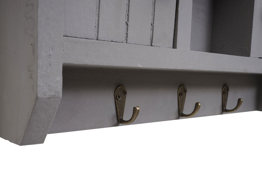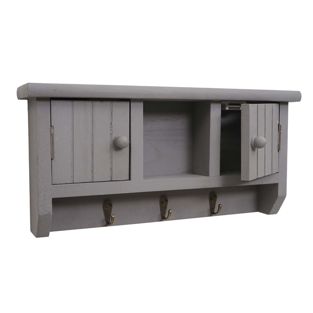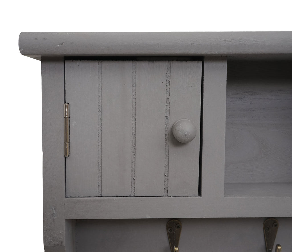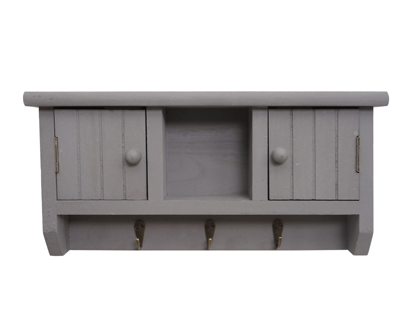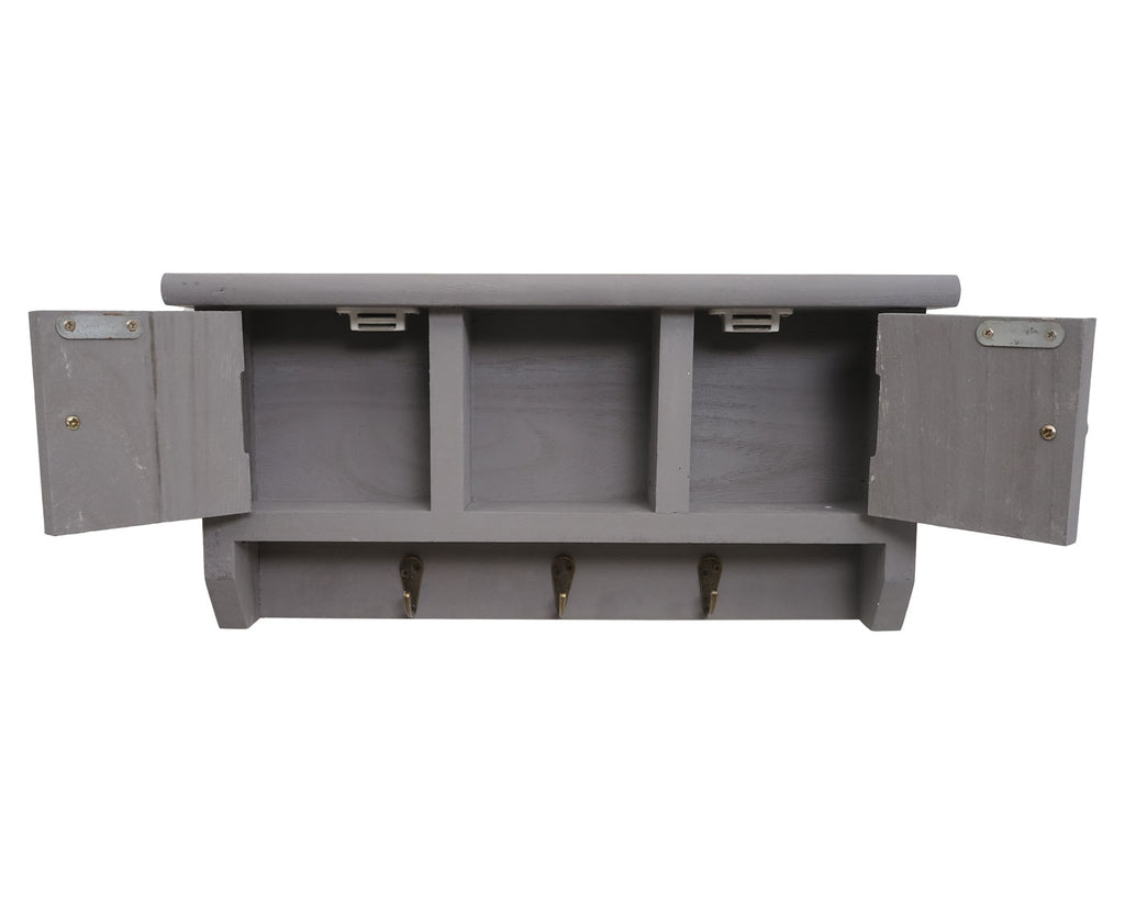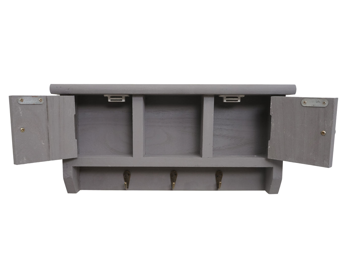 Porte-clés meuble d'entrée mural avec portes et étagère en bois massif gris 04_0002453