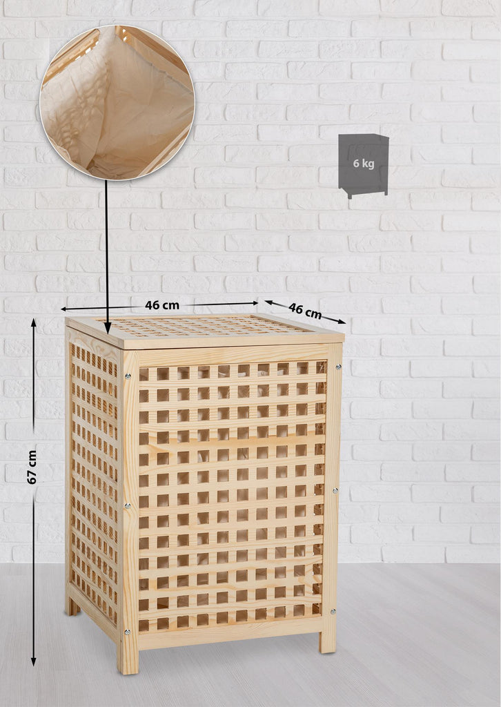 Panier à linge avec trous d'aération avec sac 67x46 cm en bois nature 10_0003818