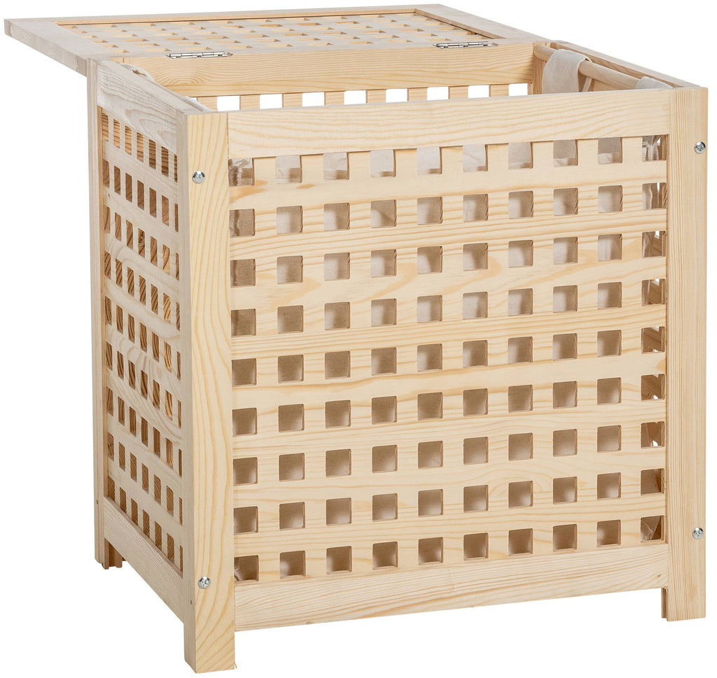 Panier à linge avec trous d'aération avec sac 55x52 cm en bois nature 10_0003819