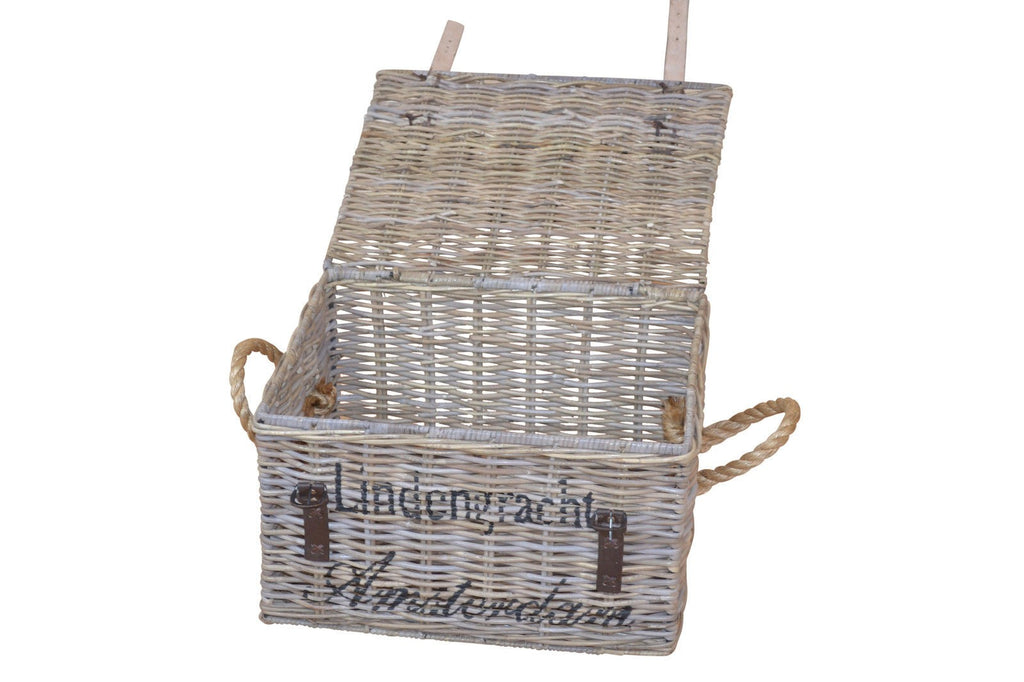 Coffre de rangement en rotin Kubu gris tissé à la main