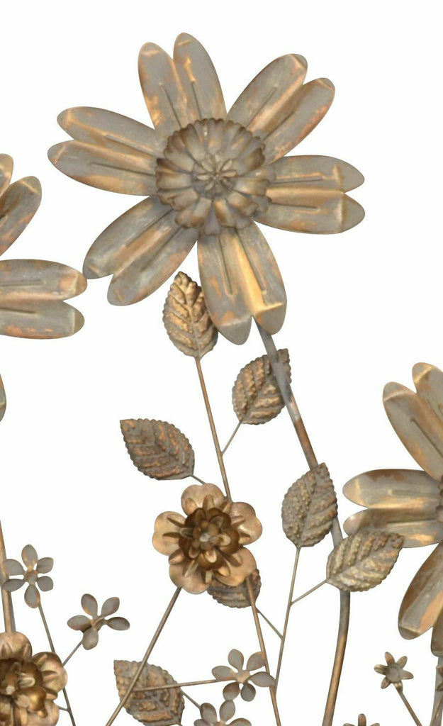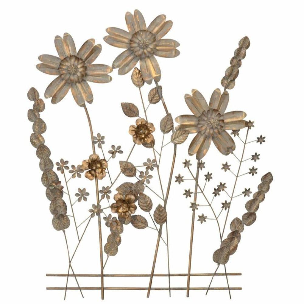 Décoration murale pré de fleur en métal antique doré 80x5x88 cm DEC05057