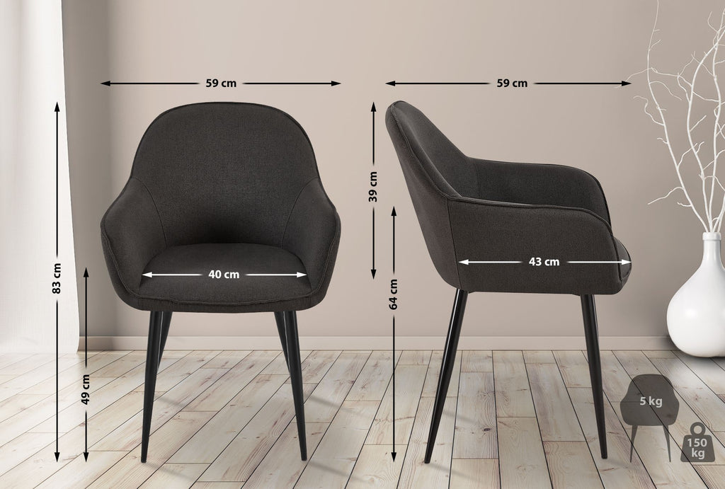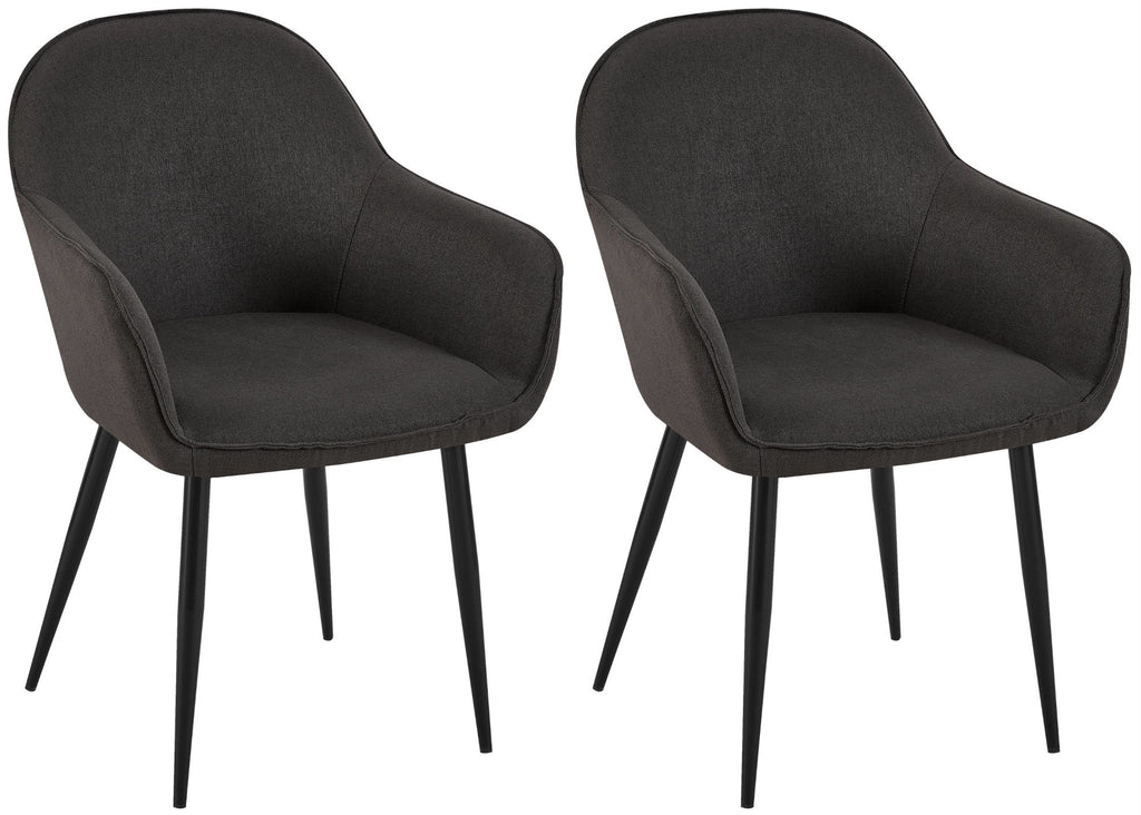 Set de 2 chaises de salle à manger avec accoudoirs design moderne et confortable en tissu noir et pieds en bois noir 10_0001603