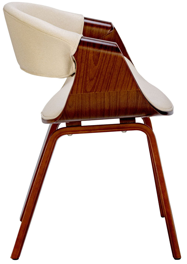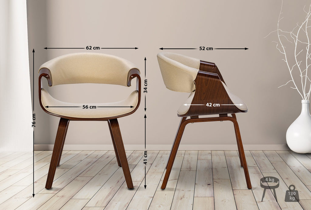 Lot de 2 chaises de salle à manger avec accoudoirs design rétro en tissu crème et bois marron 10_0007312
