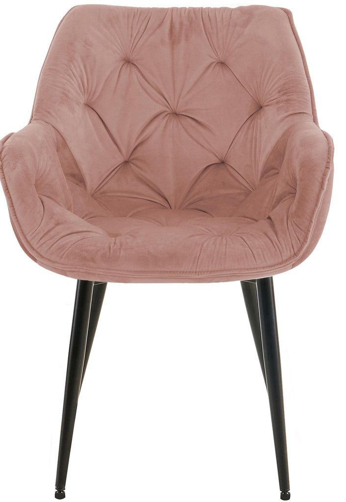 Lot de 2 chaises de salle à manger coutures décoratives en velours rose et pieds en métal noir 10_0007628