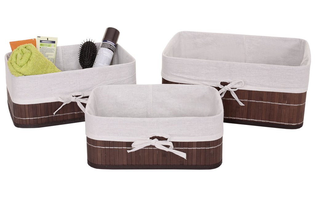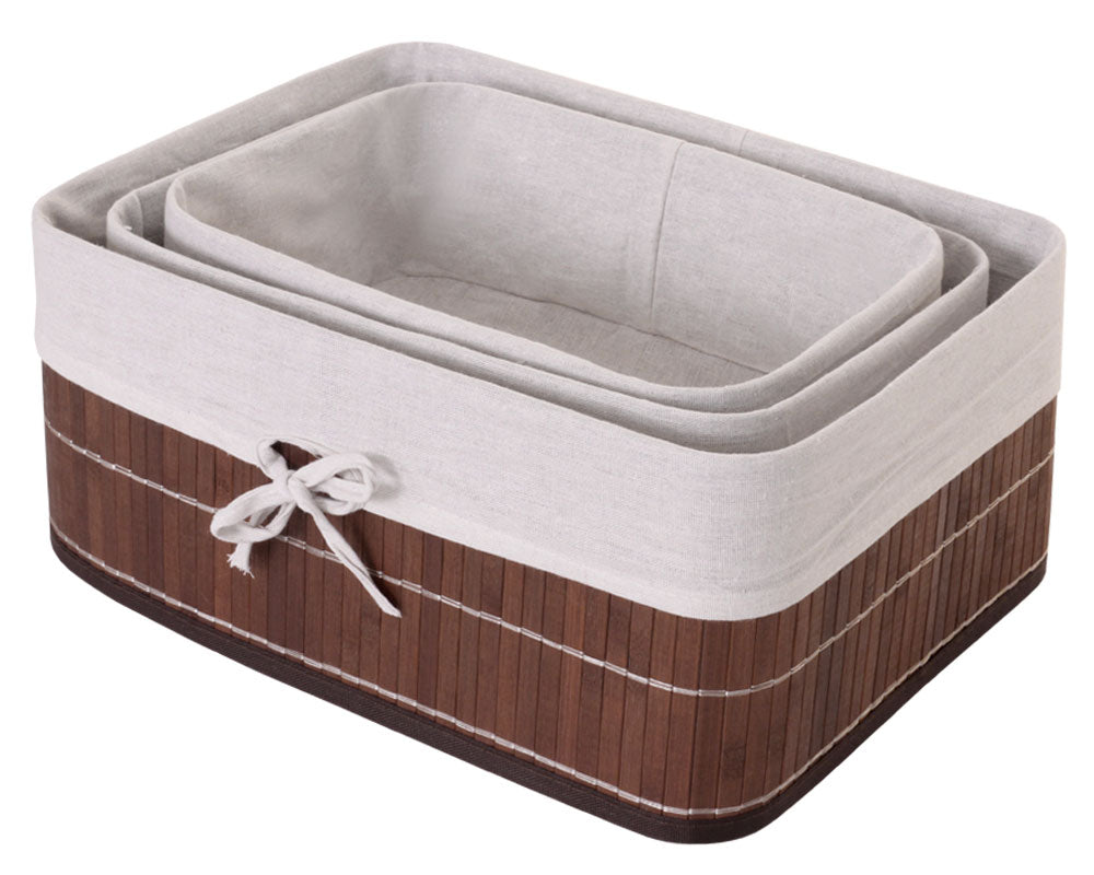 Ces jolis paniers de rangement en bambou avec inserts textiles vous offrent la possibilité de garder vos affaires rangées et décoratives à la fois.