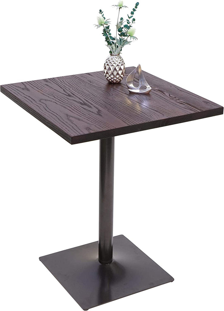 Le grain clair du bois d'orme se marie parfaitement avec le piètement en acier, ce qui confère à la table bistrot une grande stabilité.