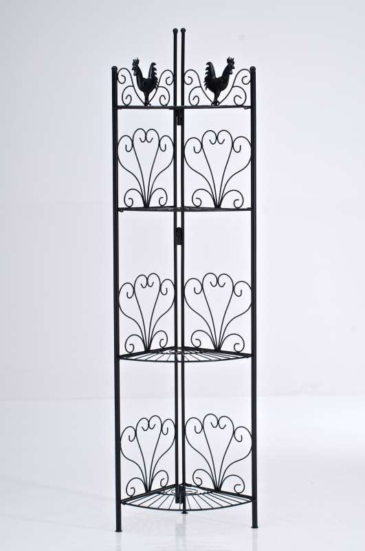 Etagère d'angle pliable design rustique support plantes hauteur 151 cm en métal noir 10_0003978