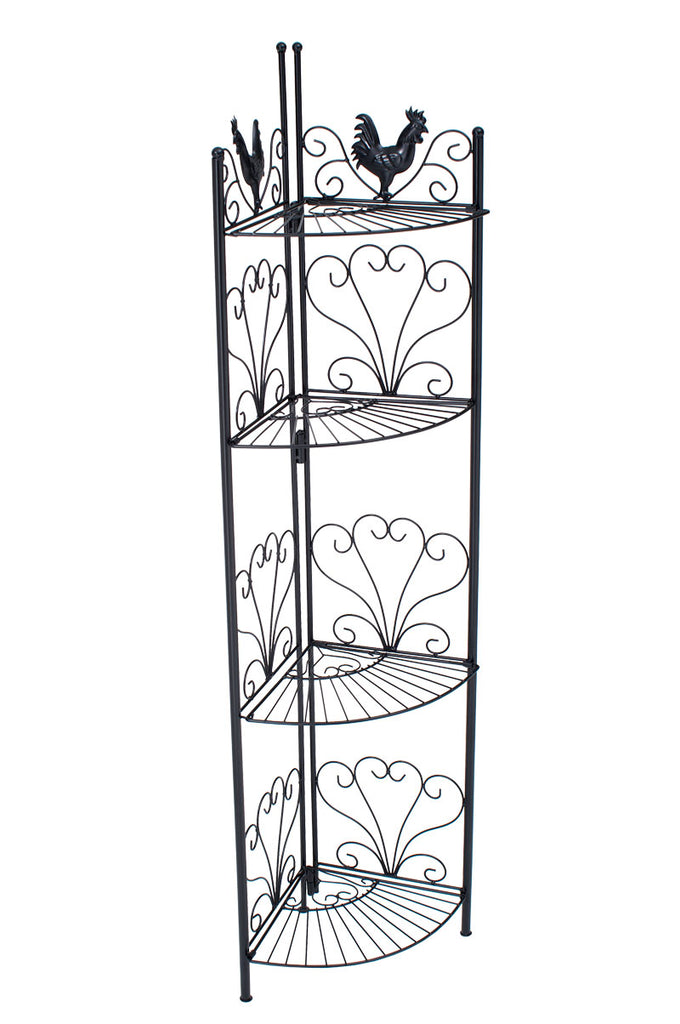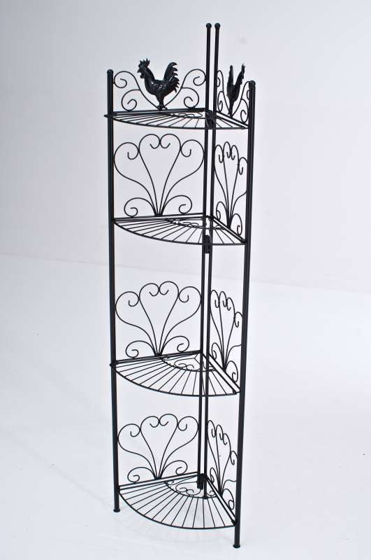 L’étagère d'angle au design nostalgique est fabriquée en tubes de fer robuste et épais de qualité supérieure. Elle est très pratique grâce à son usage multiple et peut aussi être utilisée comme commode ou alors surface de travail à la cuisine. Elle s´adapte aussi parfaitement pour un usage comme étagère de cuisine ou à épices et comme étagère à chaussures pour le rangement des chaussures des enfants. Les éléments de décoration sont très jolis et lui donne un aspect romantique.