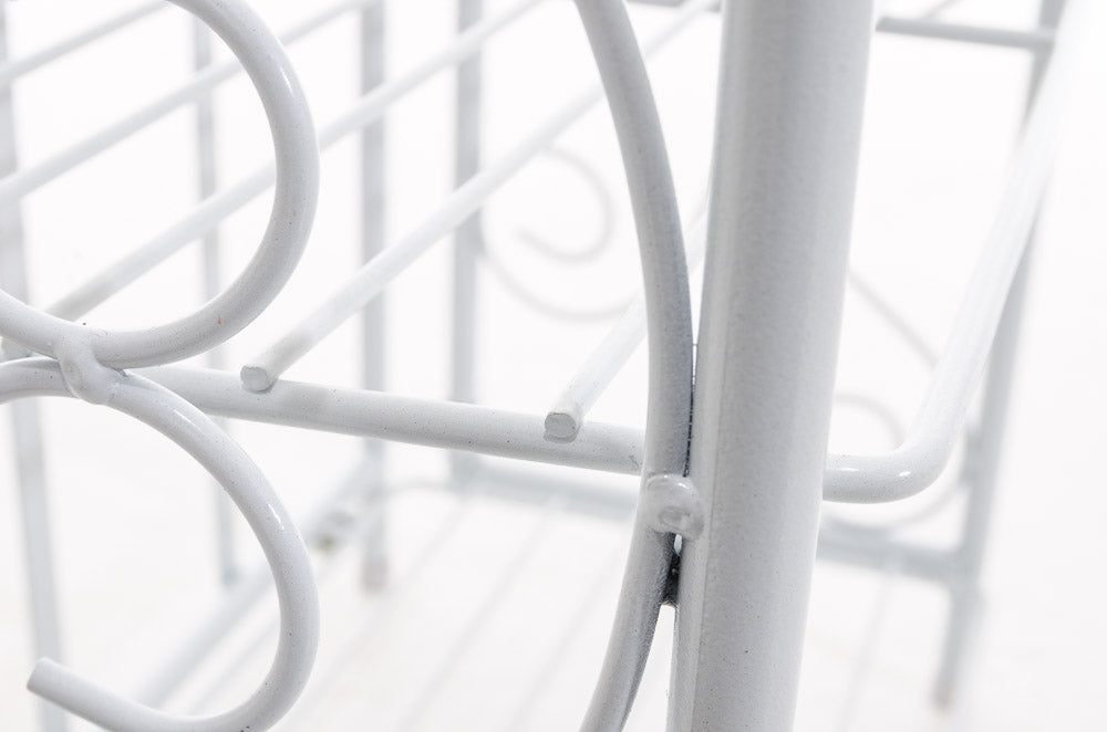 L'étagère est fabriquée en tubes de fer robuste et épais de qualité supérieure. Elle est très pratique, grâce à son usage multiple et peut aussi être utilisée comme commode ou alors surface de rangement à la cuisine. Elle trouvera également une place de choix dans votre salle de bain pour le rangement des serviettes et autres produits. Les éléments de décoration sont très jolis et lui donnent un aspect rustique. L'étagère se plie pour un meilleur rangement en cas de non-utilisation immédiate.