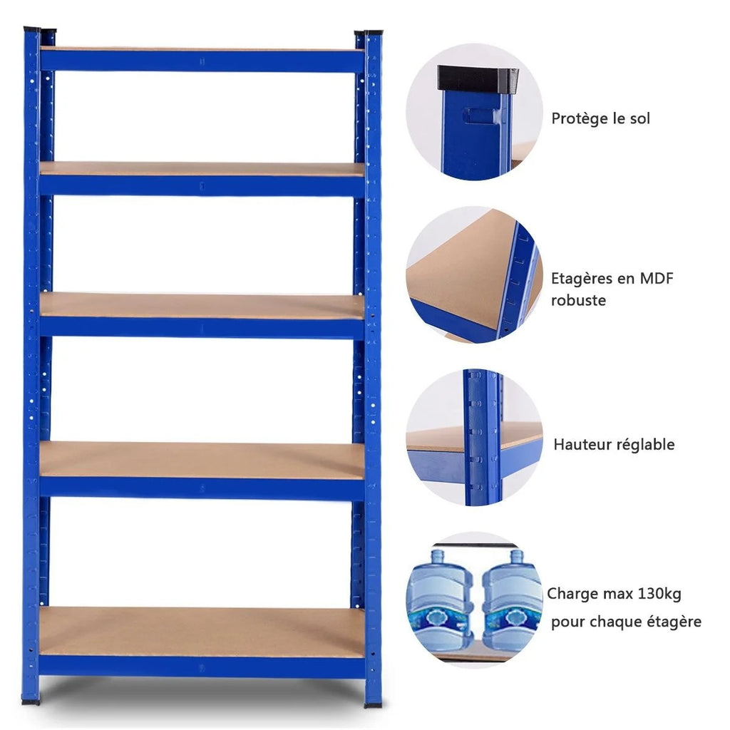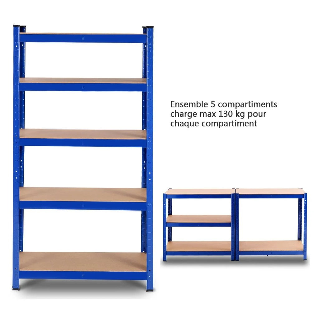 Etagère établi rangement charge lourde métallique tablettes en bois à 5 niveaux 75 x 30 x 150 cm bleu 20_0000597
