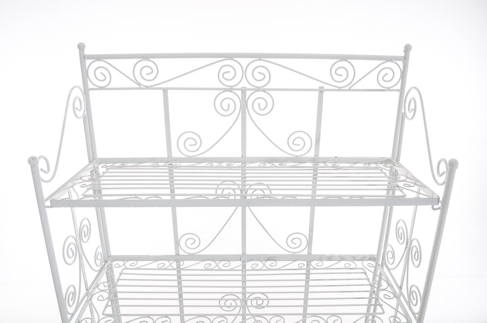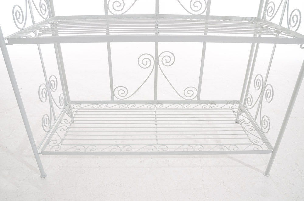 L'étagère sur pied est une étagère polyvalente et décorative de style maison de campagne qui convient aussi bien à l'intérieur qu'à l'extérieur. Avec ses cinq étagères rabattables, il offre suffisamment d'espace pour les plantes, livres et autres objets de décoration. La construction en métal thermolaqué assure robustesse et stabilité, ce qui la rend idéale pour une utilisation sur le balcon, dans le jardin, sur la terrasse ainsi que dans les salons et autres espaces de vie. La conception peu encombrante permet un rangement compact lorsque l'étagère n'est pas utilisée. Les décorations délicates confèrent à l'étagère un aspect attrayant qui s'intègre harmonieusement dans n'importe quel style d'intérieur. Peut-être installée rapidement et facilement et offre une flexibilité supplémentaire grâce à la fonction pliante des étagères.