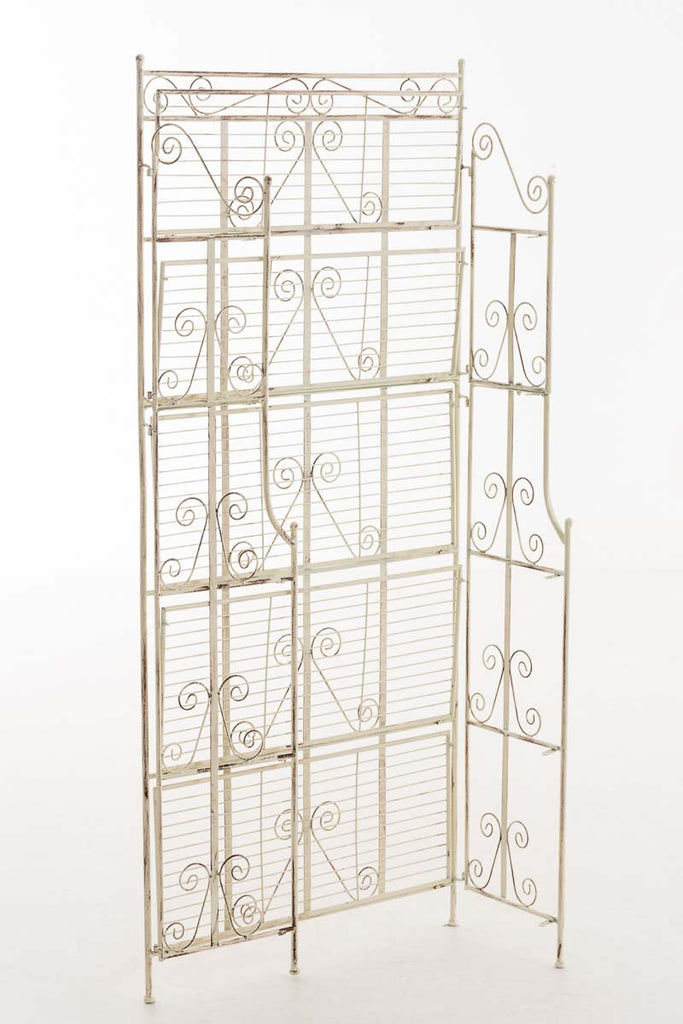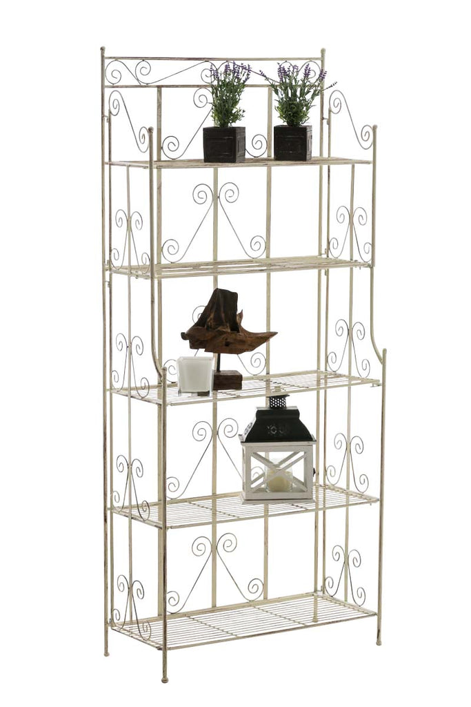 Etagère sur pieds avec 5 niveaux rangement balcon terrasse salon pliable en métal crème vieilli 10_0003971