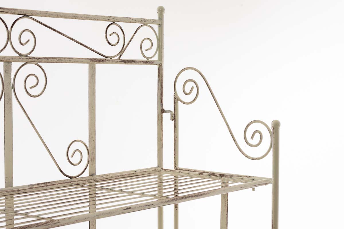 L'étagère sur pied est une étagère polyvalente et décorative de style maison de campagne qui convient aussi bien à l'intérieur qu'à l'extérieur. Avec ses cinq étagères rabattables, il offre suffisamment d'espace pour les plantes, livres et autres objets de décoration. La construction en métal thermolaqué assure robustesse et stabilité, ce qui la rend idéale pour une utilisation sur le balcon, dans le jardin, sur la terrasse ainsi que dans les salons et autres espaces de vie. La conception peu encombrante permet un rangement compact lorsque l'étagère n'est pas utilisée. Les décorations délicates confèrent à l'étagère un aspect attrayant qui s'intègre harmonieusement dans n'importe quel style d'intérieur. Peut-être installée rapidement et facilement et offre une flexibilité supplémentaire grâce à la fonction pliante des étagères.