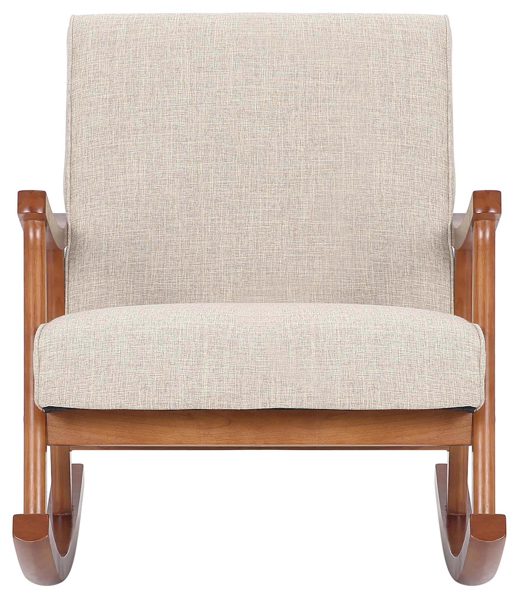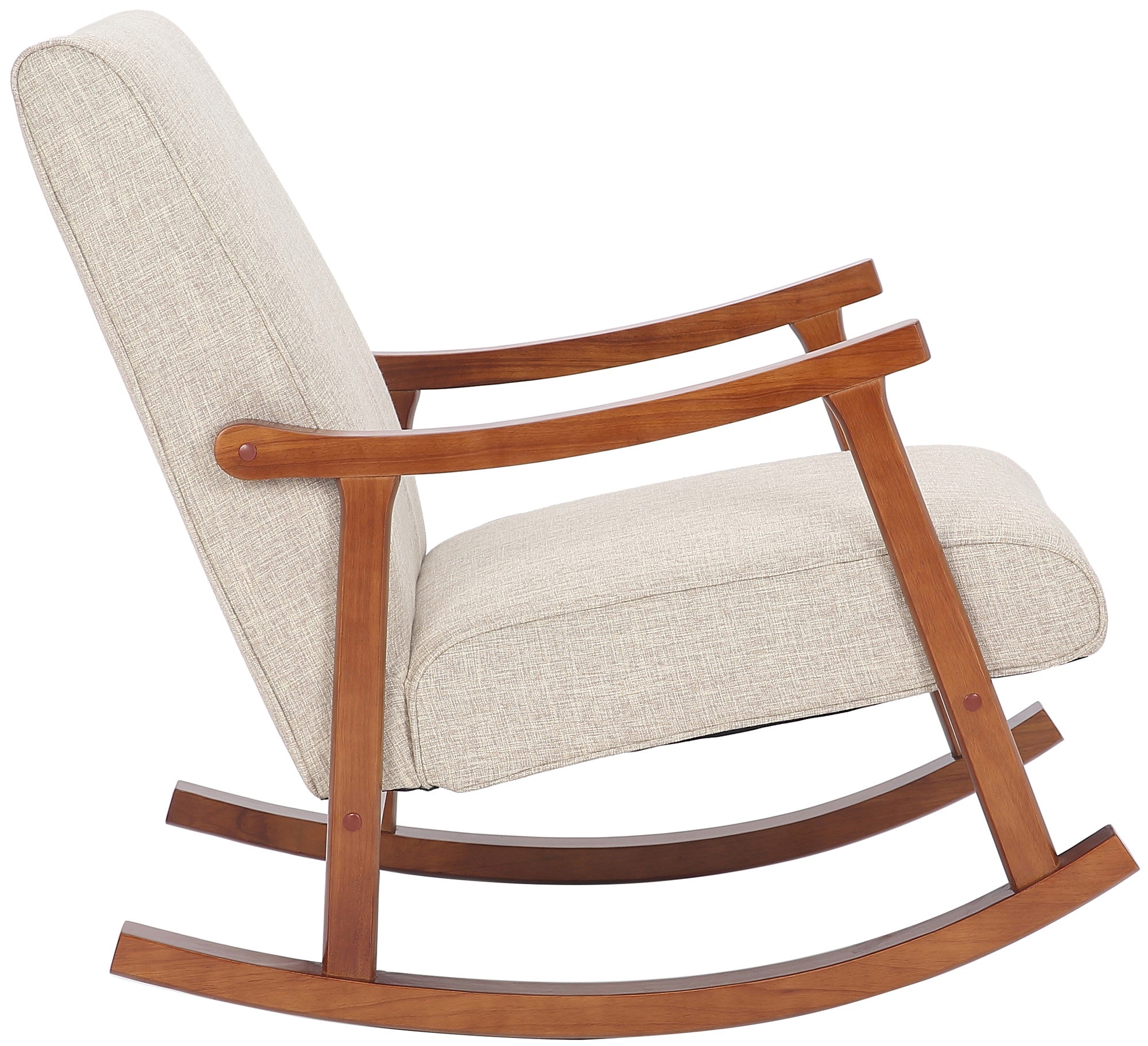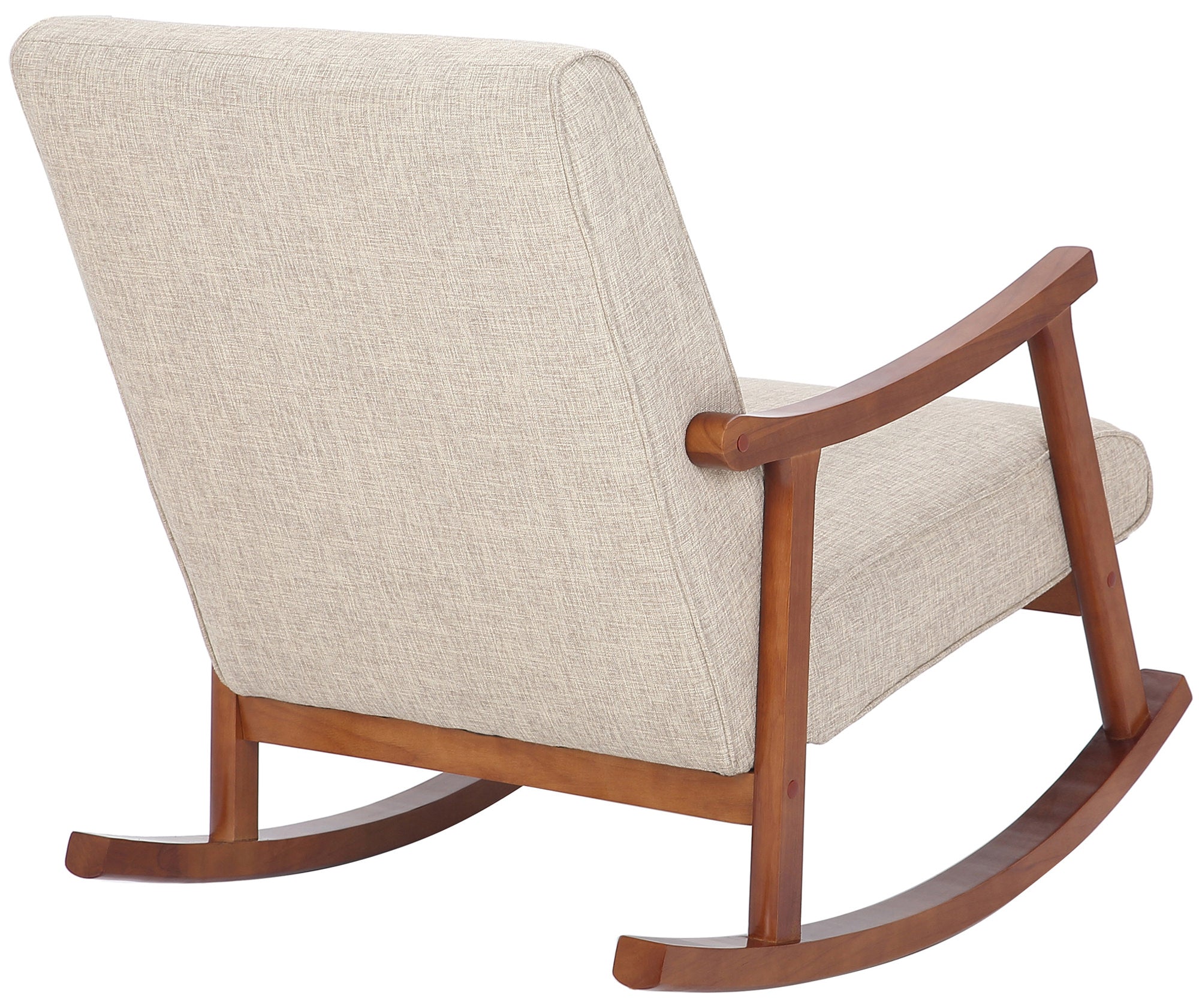 Fauteuil à bascule style rocking chair en tissu crème et pied en bois FAB10067