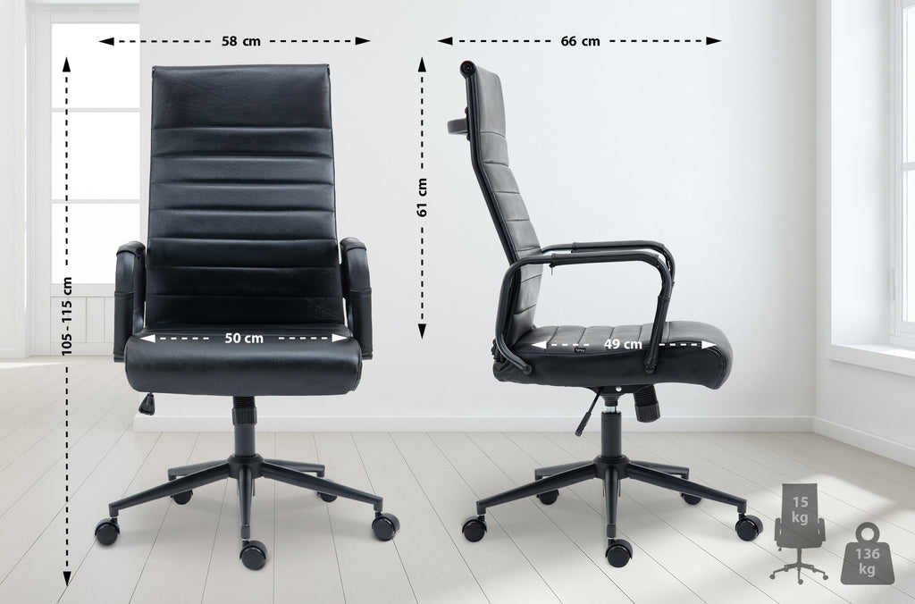 Le mécanisme à bascule intégré au siège renforce la liberté de mouvement qu'offre cette chaise de bureau qui repose sur un support en métal aspect chromé muni de 5 roulettes légères adaptables à tout type de sol. La chaise est également dotée d'accoudoirs partiellement revêtus de véritable cuir.