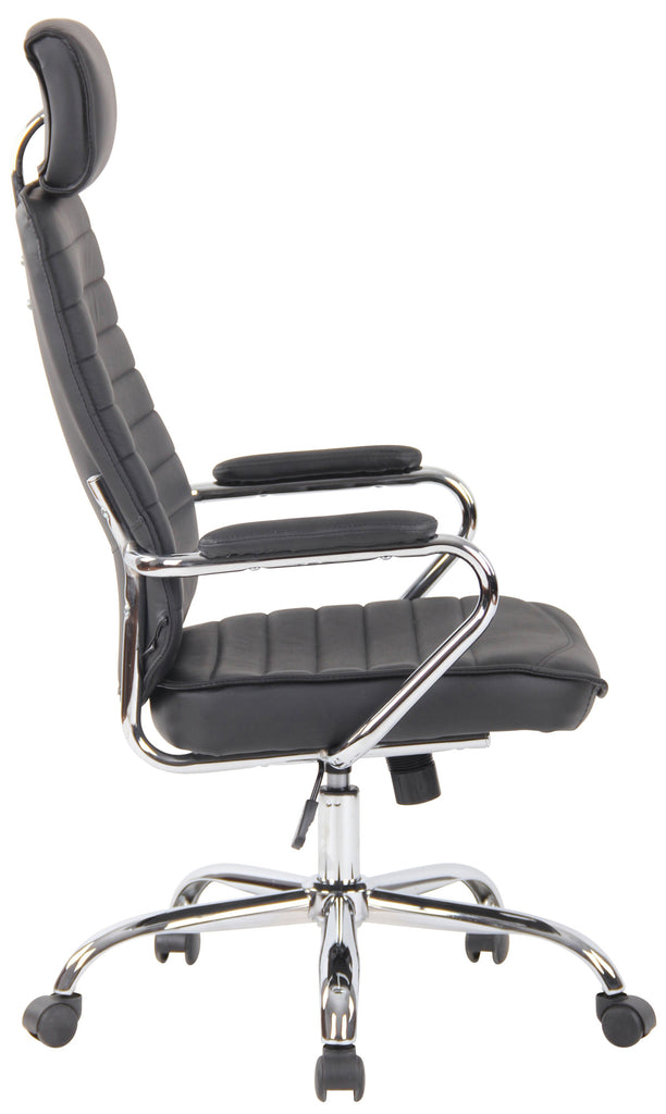 Le fauteuil de bureau est particulièrement confortable, notamment grâce à son assise généreusement rembourrée et revêtue d'un véritable cuir de haute qualité aussi résistant que facile à entretenir.