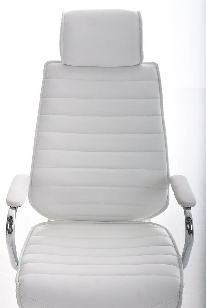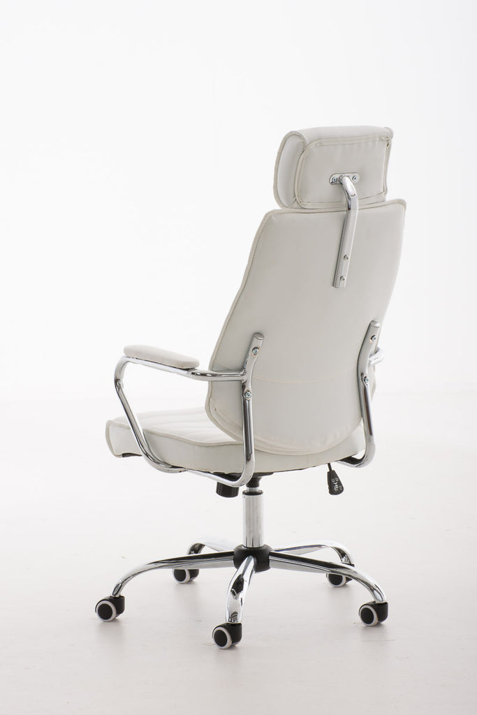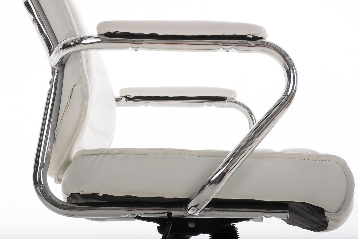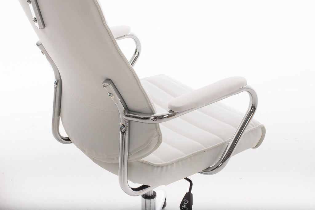 Fauteuil de bureau hauteur réglable pivotant mécanisme de bascule PVC blanc et métal chromé 10_0002628