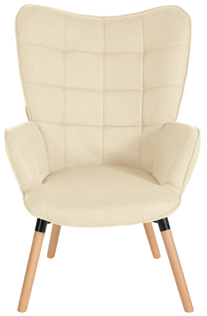 Fauteuil de lecture chambre lounge rembourré revêtement en tissu crème pieds en bois 10_0003623