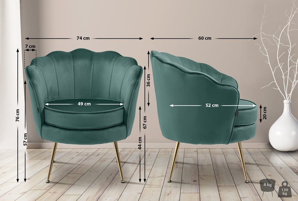 Fauteuil lounge chaise de chaise rembourrée avec coutures décoratives revêtement en velours vert et pieds métal doré FAL101556