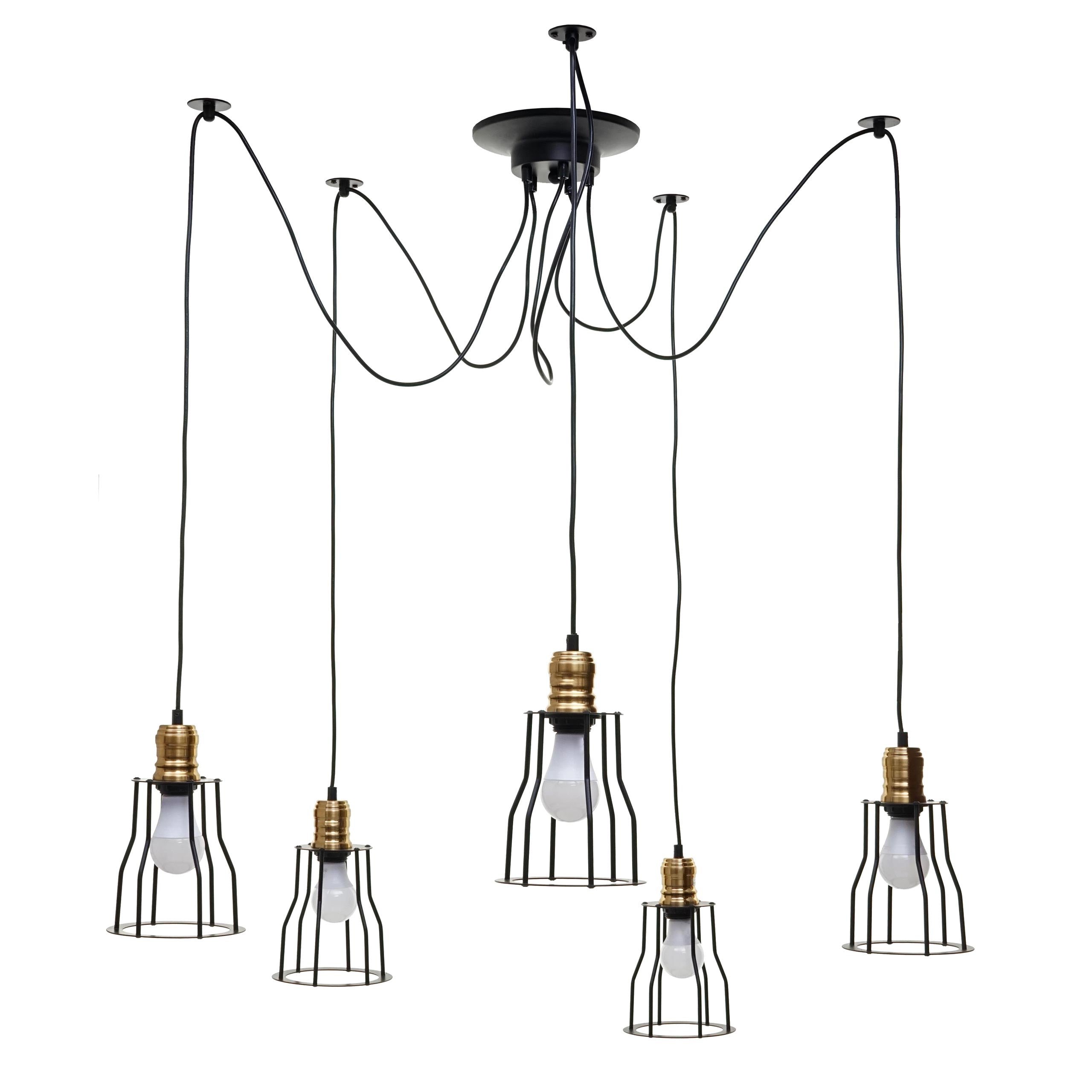 Lustre lampe suspendue design industriel réglable en hauteur noir 5x abat-jour 04_0003597