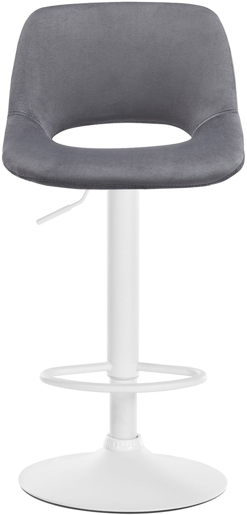 Tabouret de bar chaise haute x1 avec repose-pieds en velours gris foncé piètement métallique blanc 10_0004609