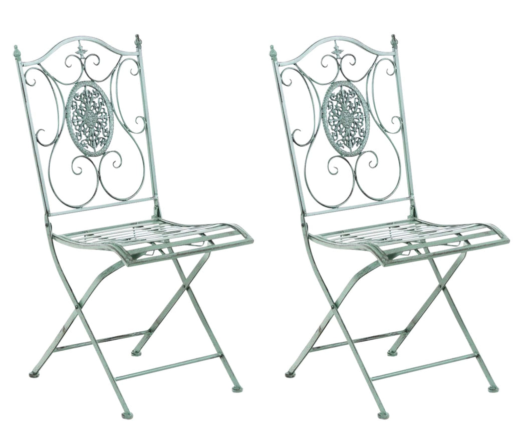 Lot de 2 chaises de jardin balcon terrasse design rustique pliable en métal vert vieilli 10_0002875