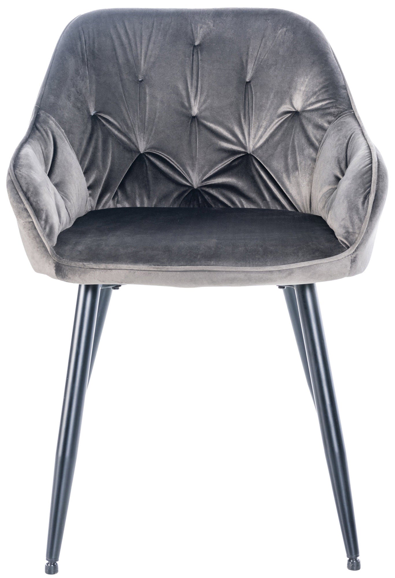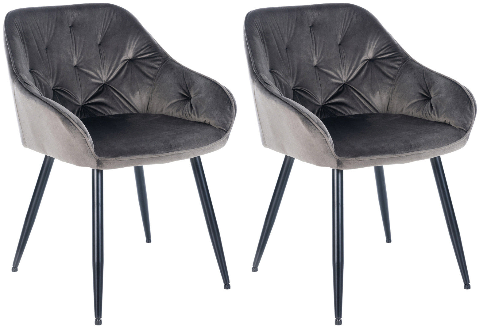 Lot de 2 chaises de salle à manger design et moderne assise en velours gris foncé et pieds en métal noir 10_0001605