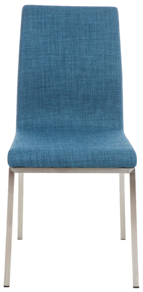Lot de 2 chaises de salle à manger style épuré en tissu bleu et acier inoxydable 10_0007787