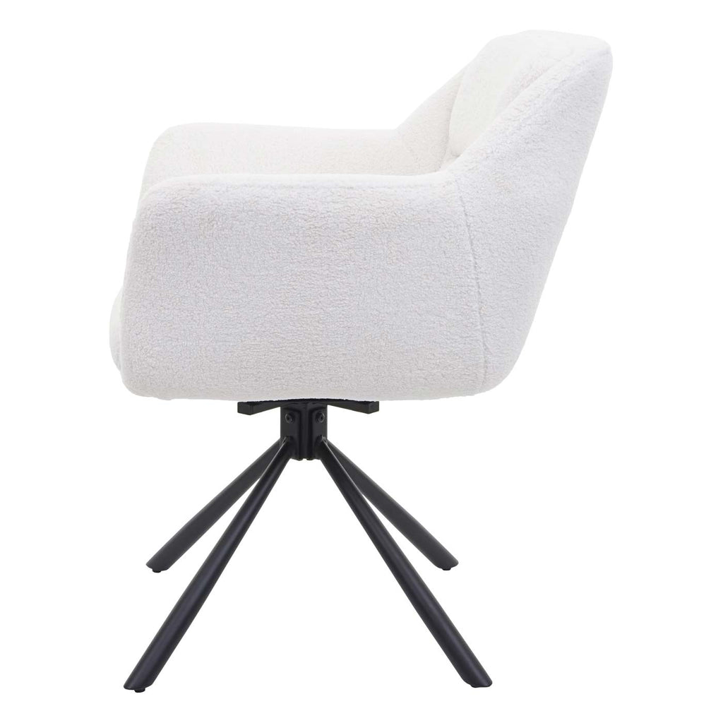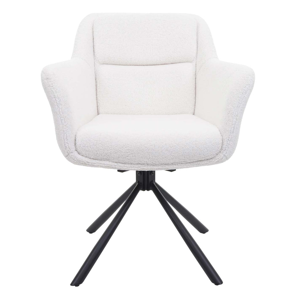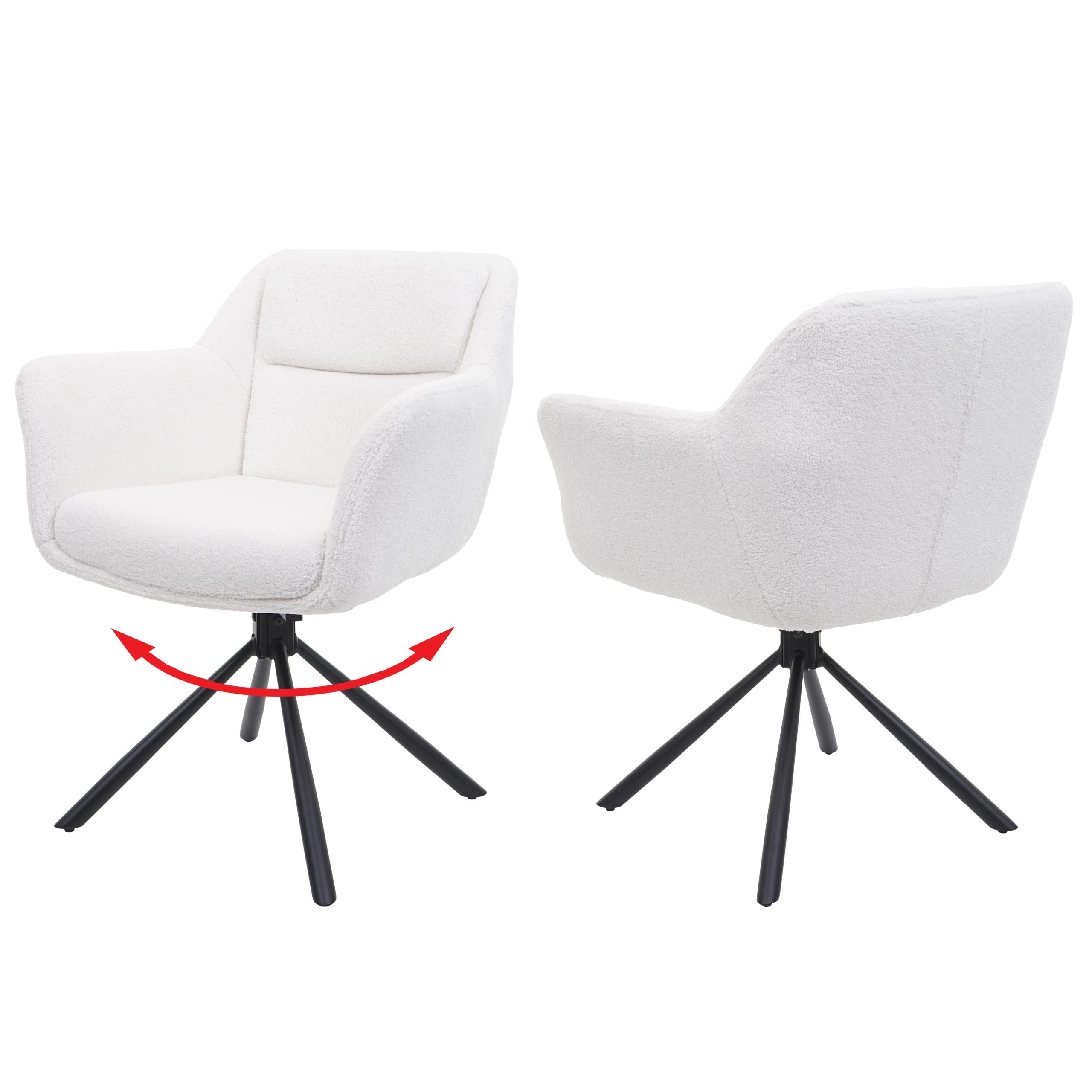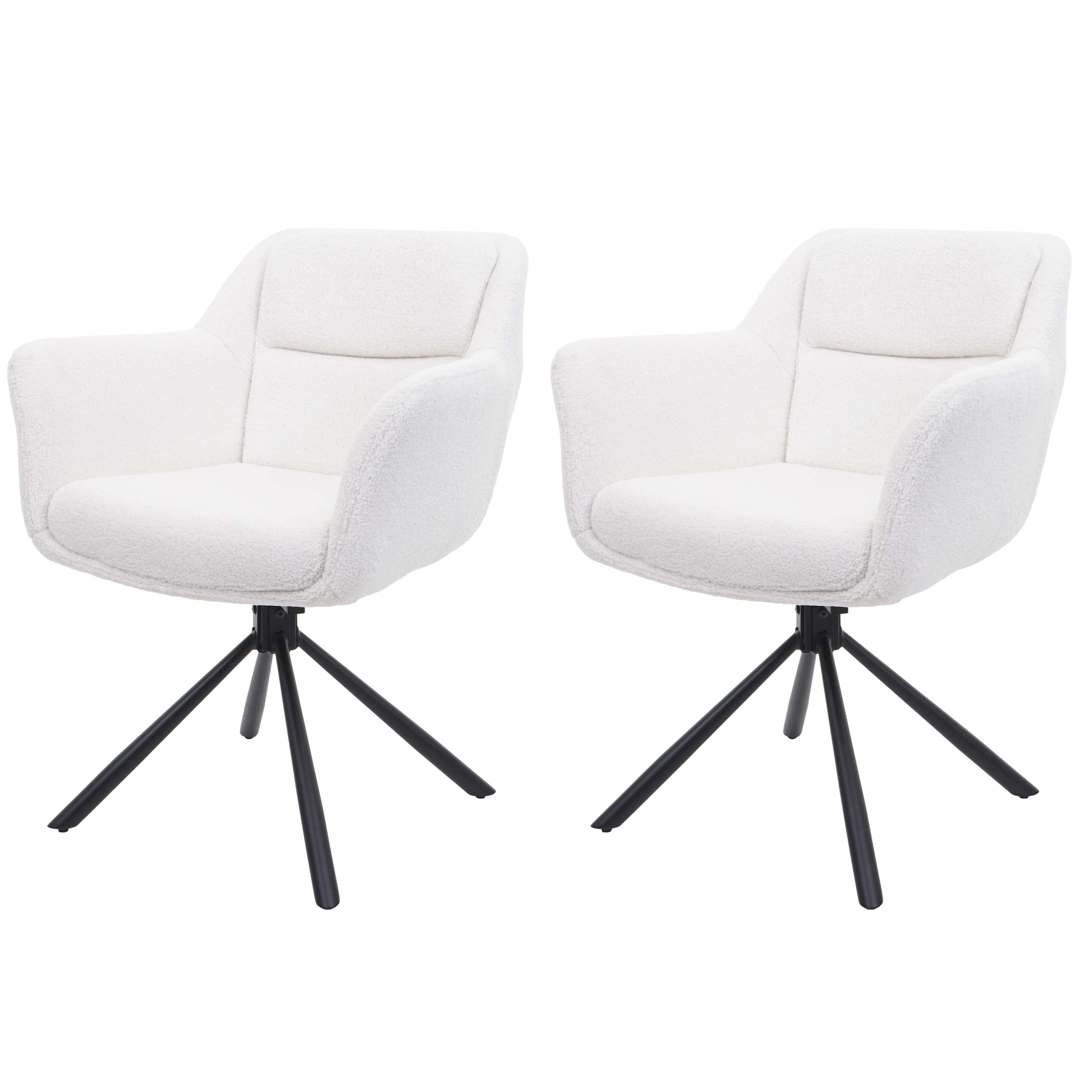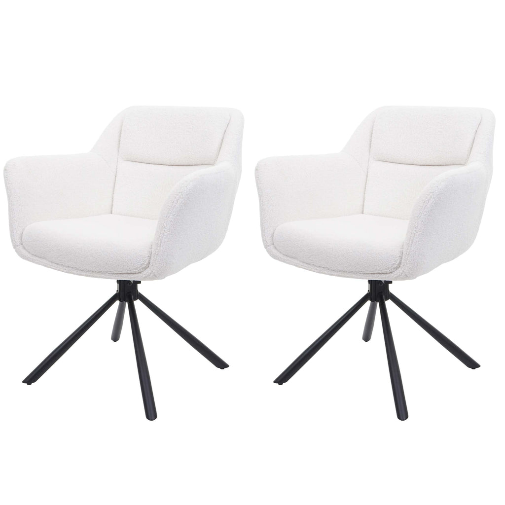 Lot de 2 chaises de salle à manger avec accoudoirs siège pivotant en tissu bouclé blanc 04_0007364