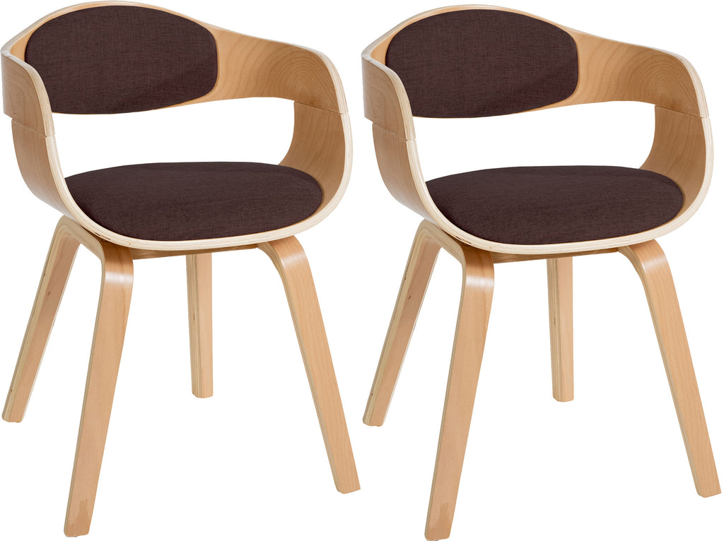 Lot de 2 chaises de salle à manger design scandinave en tissu marron et structure en bois clair 10_0001719