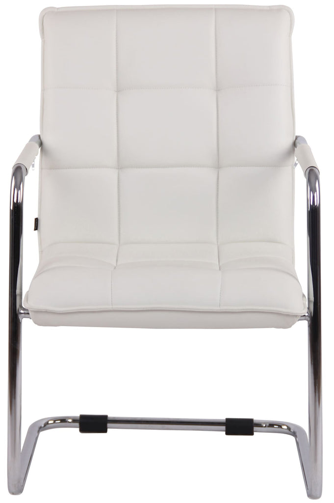 Lot de 2 fauteuils de bureau visiteur accoudoirs conférence en PVC blanc piètement luge en métal chromé 10_0003119