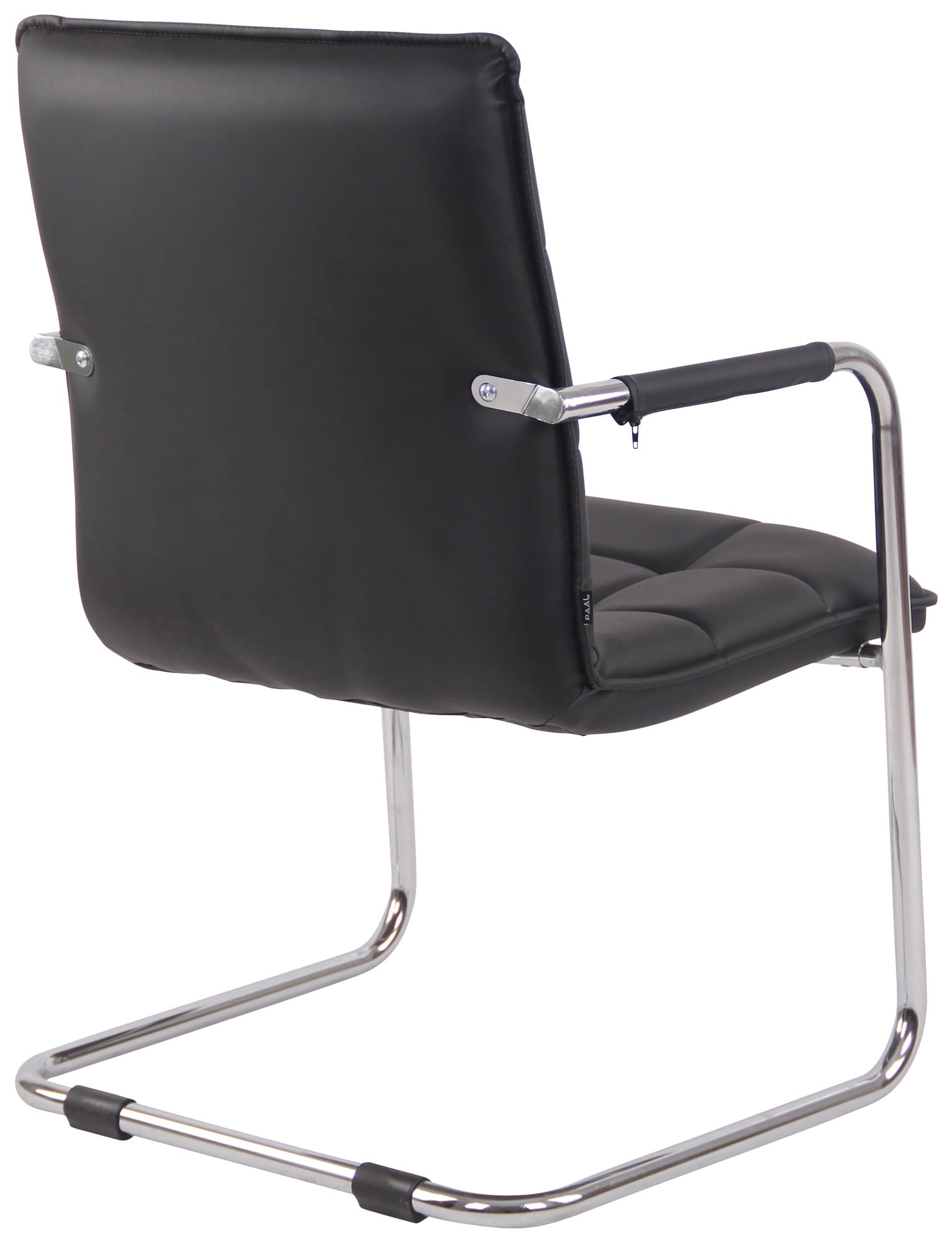 Vous avez besoin d'une chaise confortable pour votre intérieur ou votre espace de travail? L'ensemble de chaises cantilever est le compromis idéal. Grâce au rembourrage généreux de son assise et son dossier, ce modèle est particulièrement confortable. Le siège est revêtu d'un Similicuir de haute qualité aussi résistant que facile à entretenir. Il est également joliment matelassé, renforçant, ainsi, le confort de ce modèle. L'ensemble de chaises repose sur un piétement luge en Métal aspect chromé. Les pieds sont dotés de patins de protection pour éviter les dérapages et éventuelles rainures sur le sols. Les accoudoirs, en métal, conçus dans la continuité du piètement, sont recouverts de cuir.
