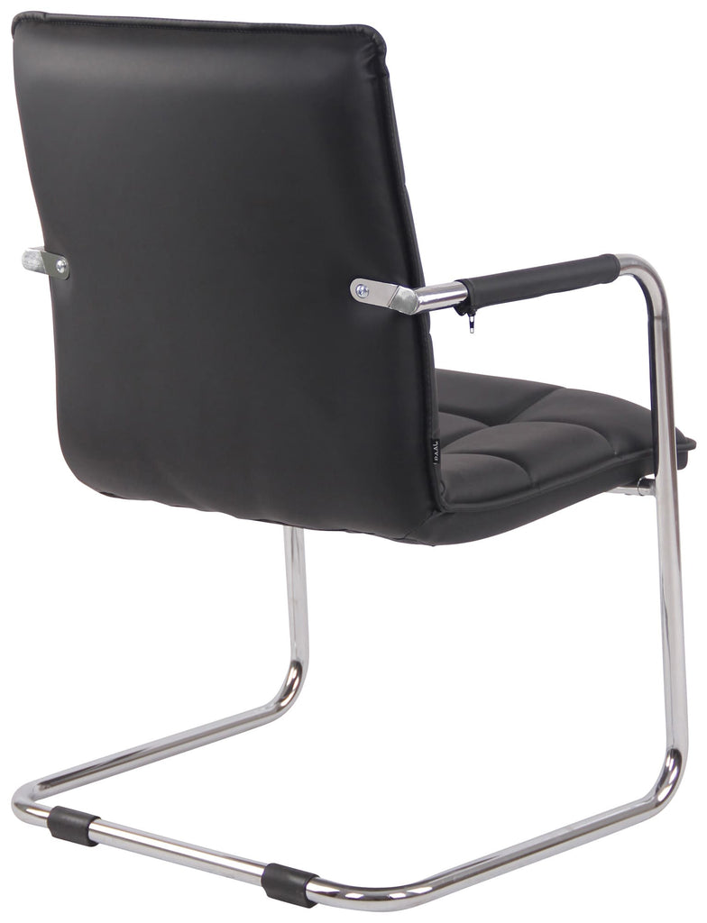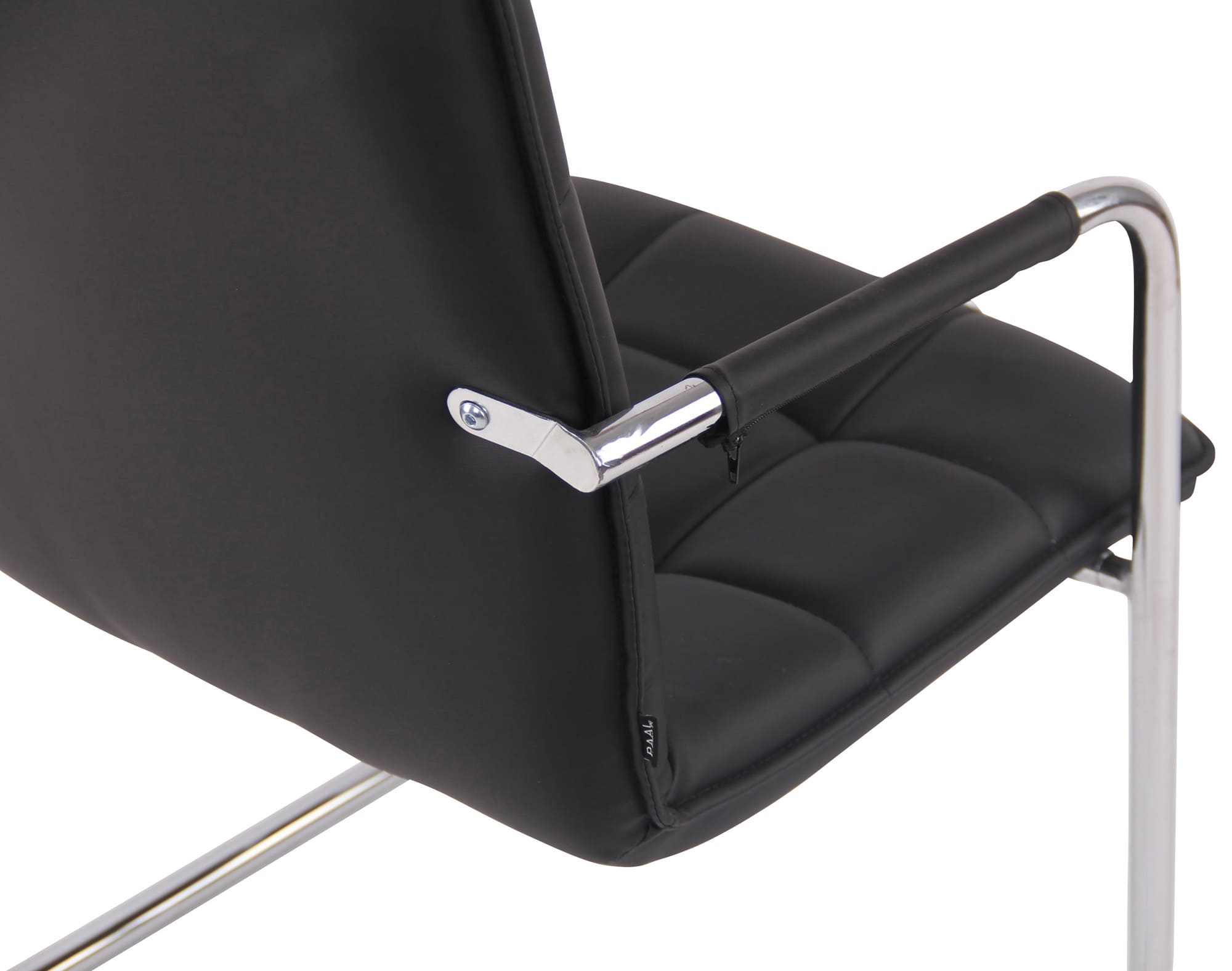 Lot de 2 fauteuils de bureau visiteur accoudoirs conférence en PVC noir piètement luge en métal chromé 10_0003116
