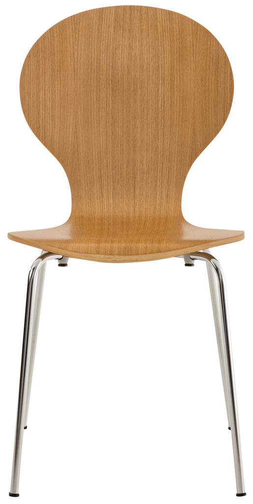 Lot de 2 chaises de cuisine salle à manger empilables dossier arrondi en bois chêne et métal chromé 10_0003091