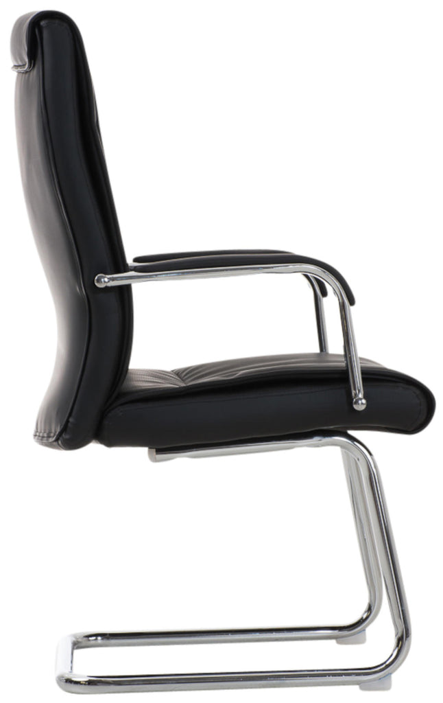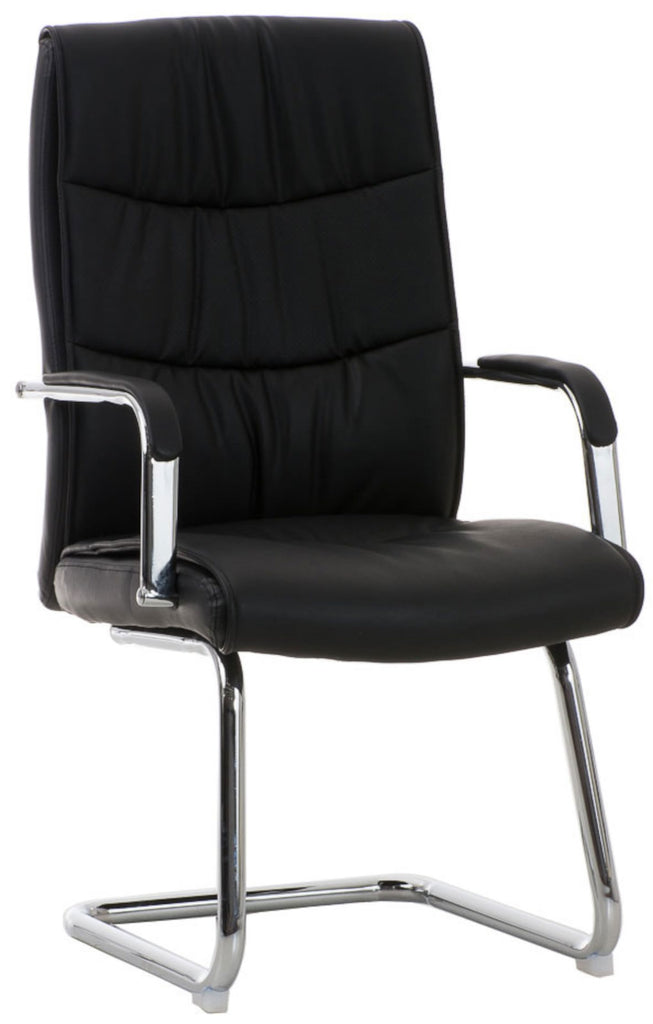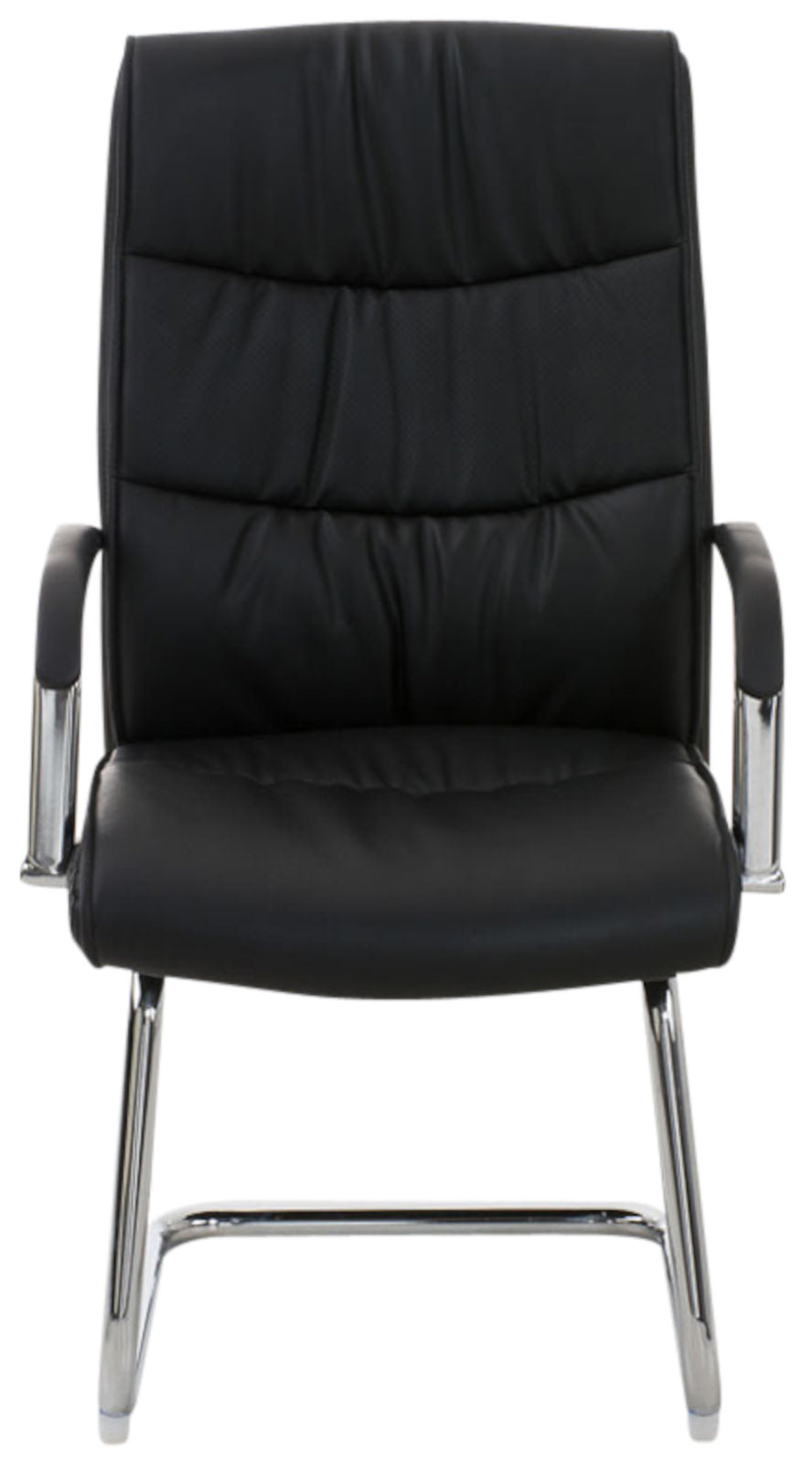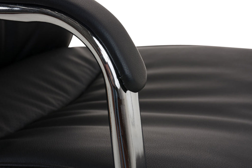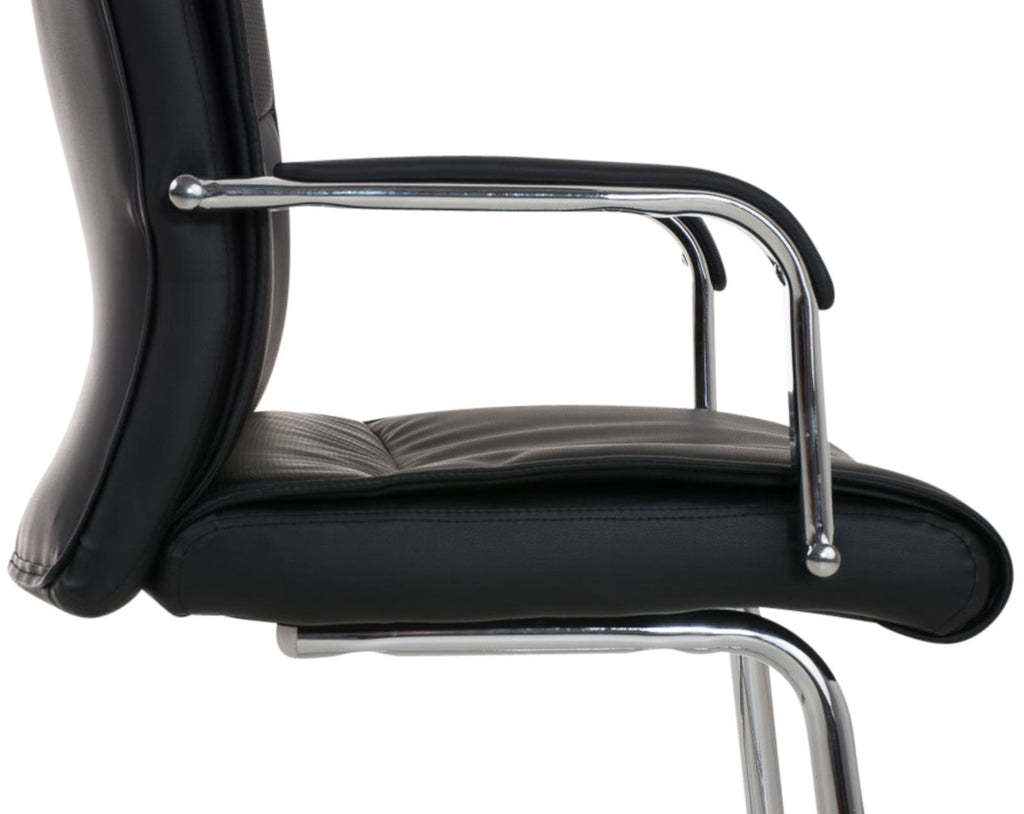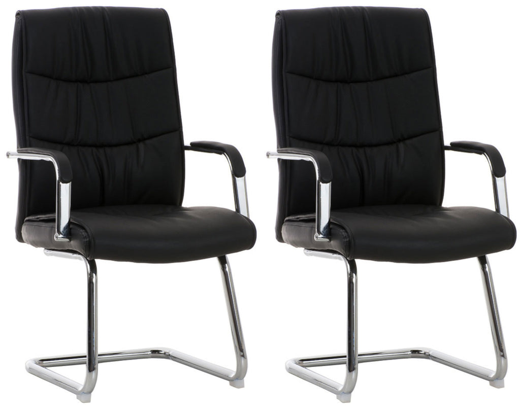 Lot de 2 fauteuils de bureau avec accoudoirs sans roulettes en PVC noir pieds en métal chromé 10_0001692