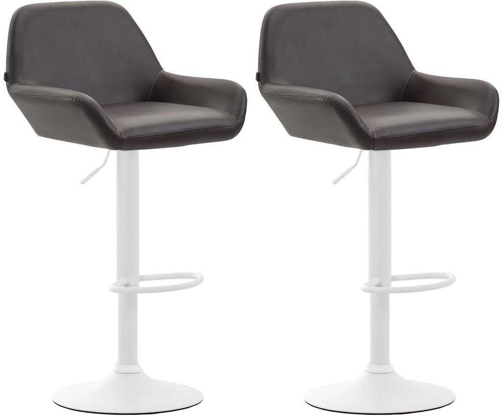 Lot de 2 tabourets de bar repose-pieds en forme d'arc en métal blanc assise en PVC marron 10_0004029