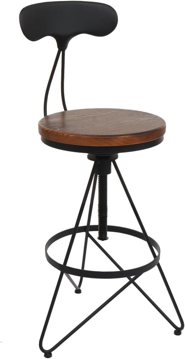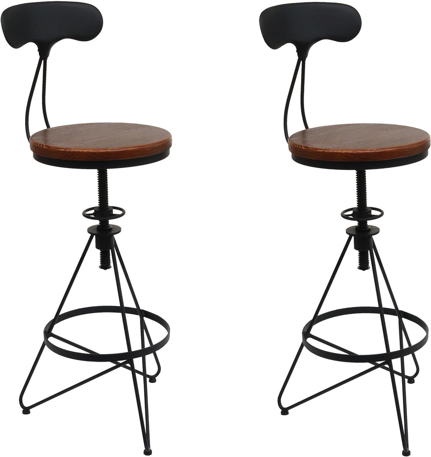 Lot de 2 tabourets de bar chaise haute avec repose-pieds rotatif réglable en hauteur design industriel métal noir et bois marron TDB04080