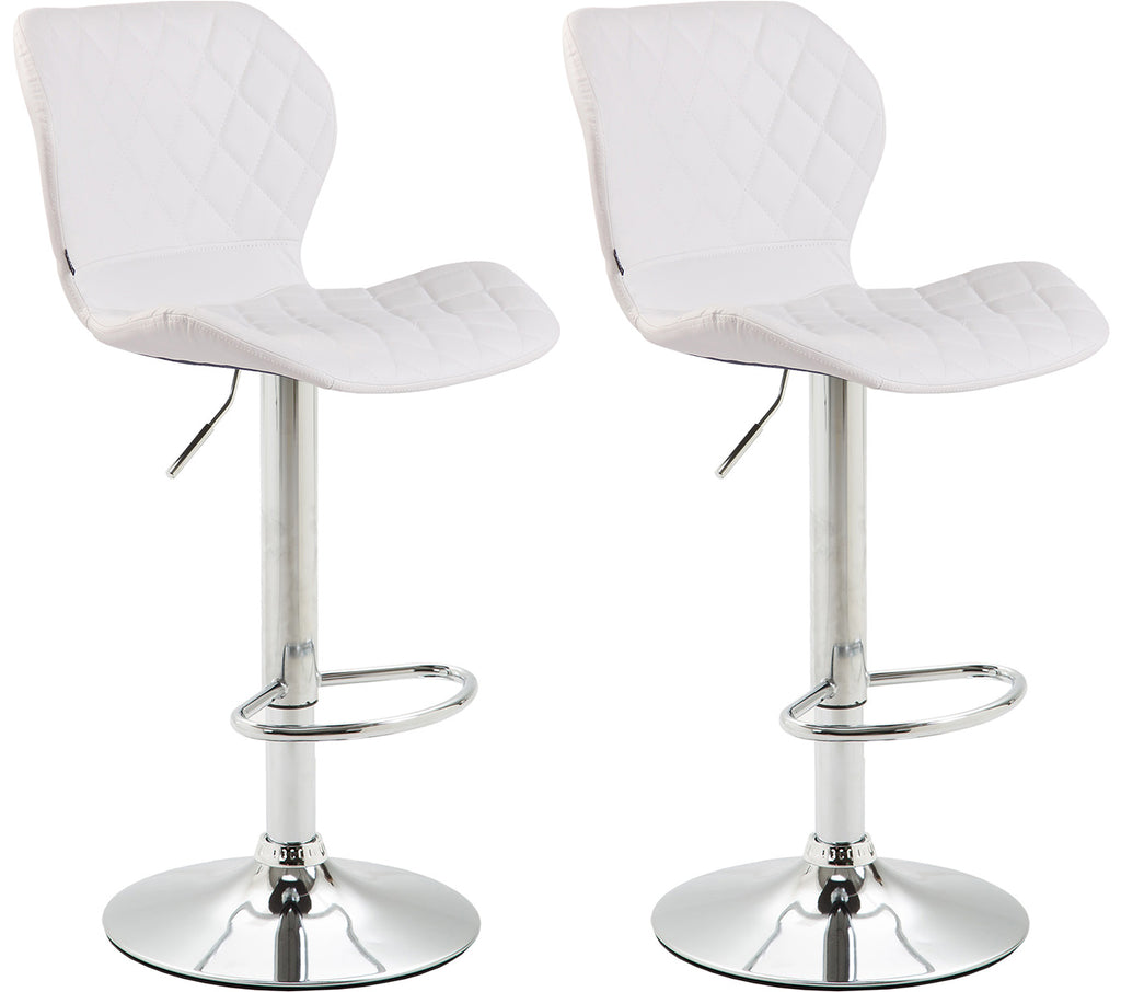 Lot de 2 tabourets de bar avec coutures décoratives en forme de losanges en PVC blanc et métal chromé 10_0004102