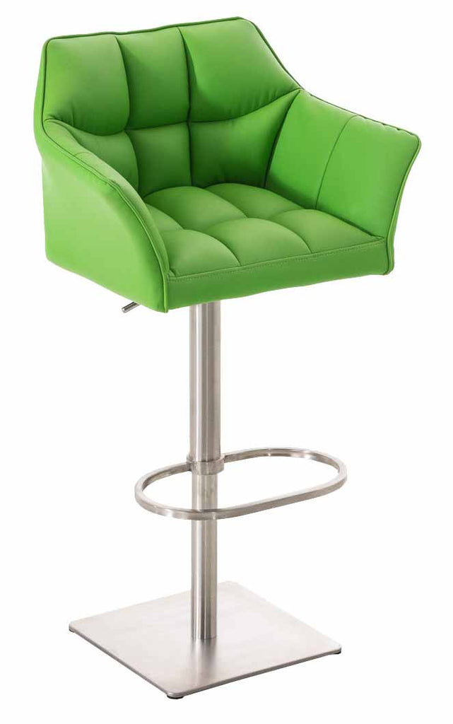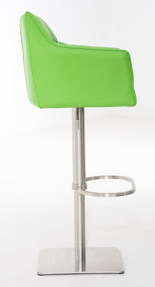 Tabourets de bar x2 réglable en PVC vert assise enveloppante capitonnée avec base carrée acier inoxydablE 10_0006806