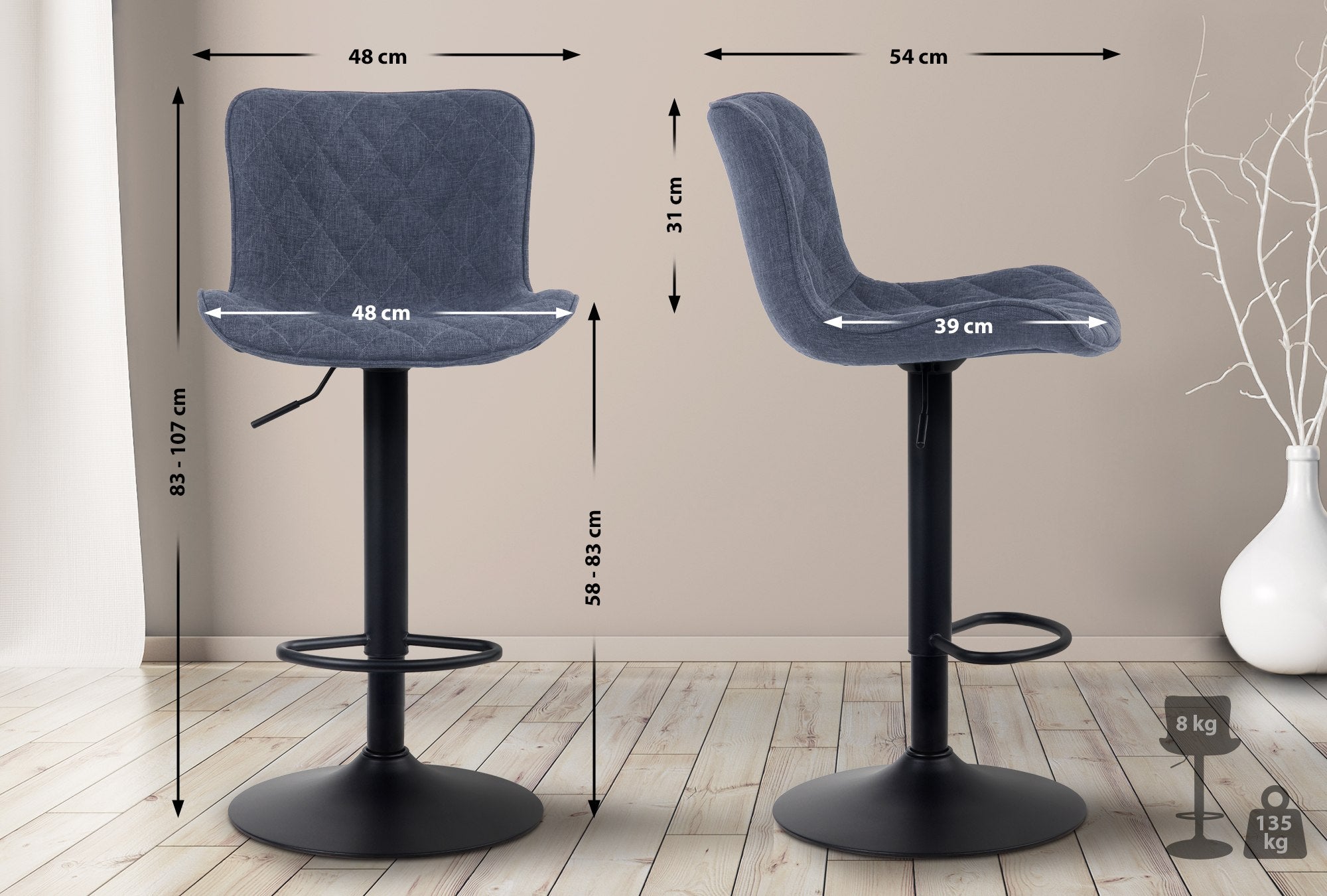 Lot de 2 tabourets de bar coutures décoratives pied trompette hauteur réglable en métal noir assise en tissu bleu 10_0004140