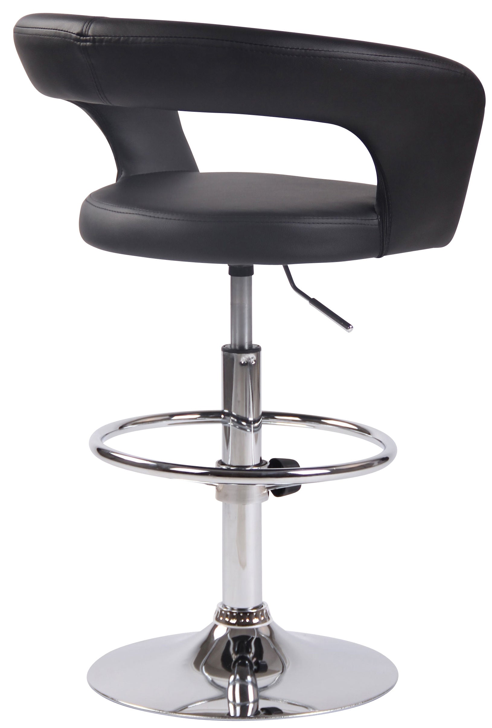 Un look moderne, un style à la frontière de l'industriel mais indéniablement élégant, une solidité indiscutable et un confort certain ! D'une apparence élégante qui ne remet, toutefois, en rien sa solidité et sa fonctionnalité, le tabouret de bar trouvera une place de choix pour embellir un comptoir de bar, un îlot central dans une cuisine ou un espace réservé aux apéritifs dans votre intérieur. Sa surface d'assise et son dossier, suffisamment haut pour un confort optimal, sont généreusement rembourrés et revêtus d’un similicuir. Le tout repose sur un support en métal chromé doté à la forme trompette et d'un repose-pied. Le piètement dispose d’une protection de sol qui sert également d’anti-dérapant.