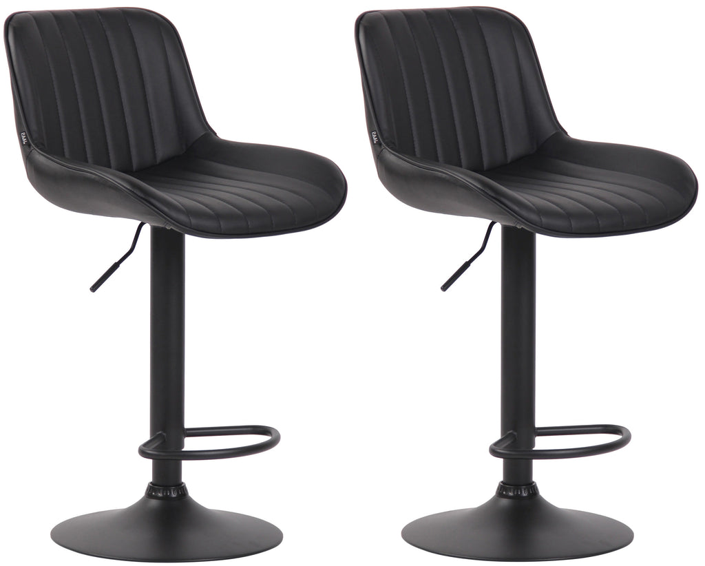 Lot de 2 tabourets de bar chaises hautes en PVC noir coutures verticales support en métal noir 10_0004281