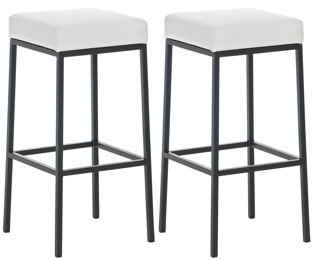 Lot de 2 tabourets de bar avec repose-pieds design simple hauteur 80 cm assise en PVC blanc support en métal noir 10_0004366