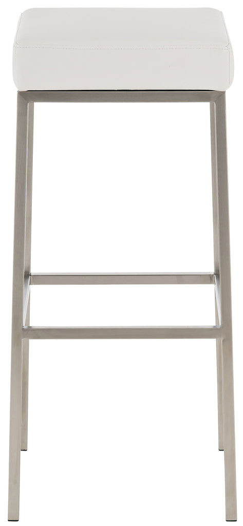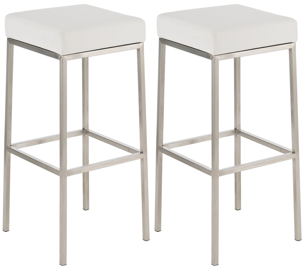 Lot de 2 tabourets de bar avec repose-pieds design simple hauteur 85 cm en PVC blanc et acier inoxydable 10_0004372