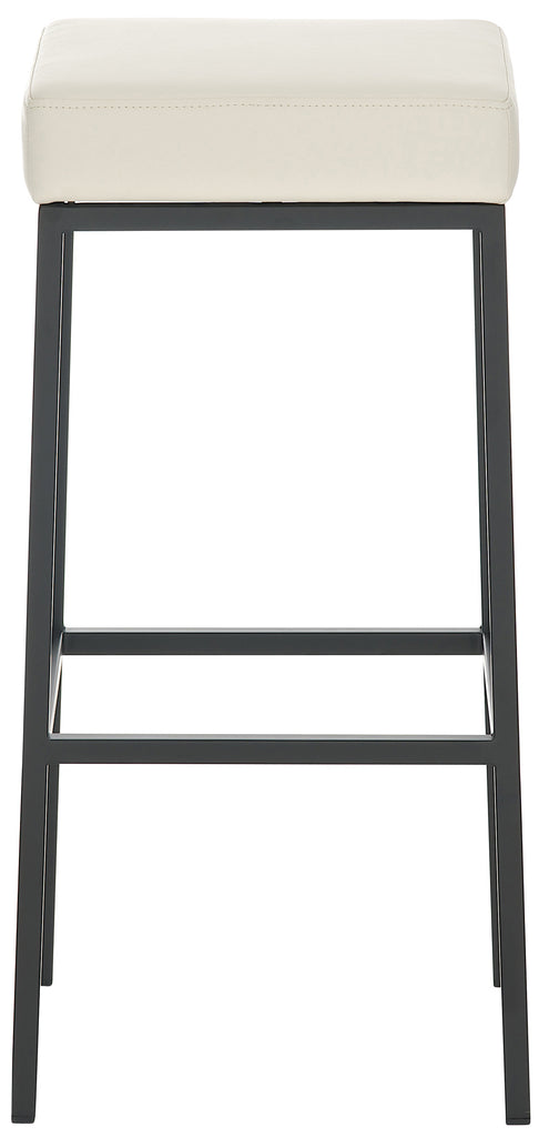 Lot de 2 tabourets de bar avec repose-pieds design simple hauteur 80 cm assise en PVC crème support en métal noir 10_0004364