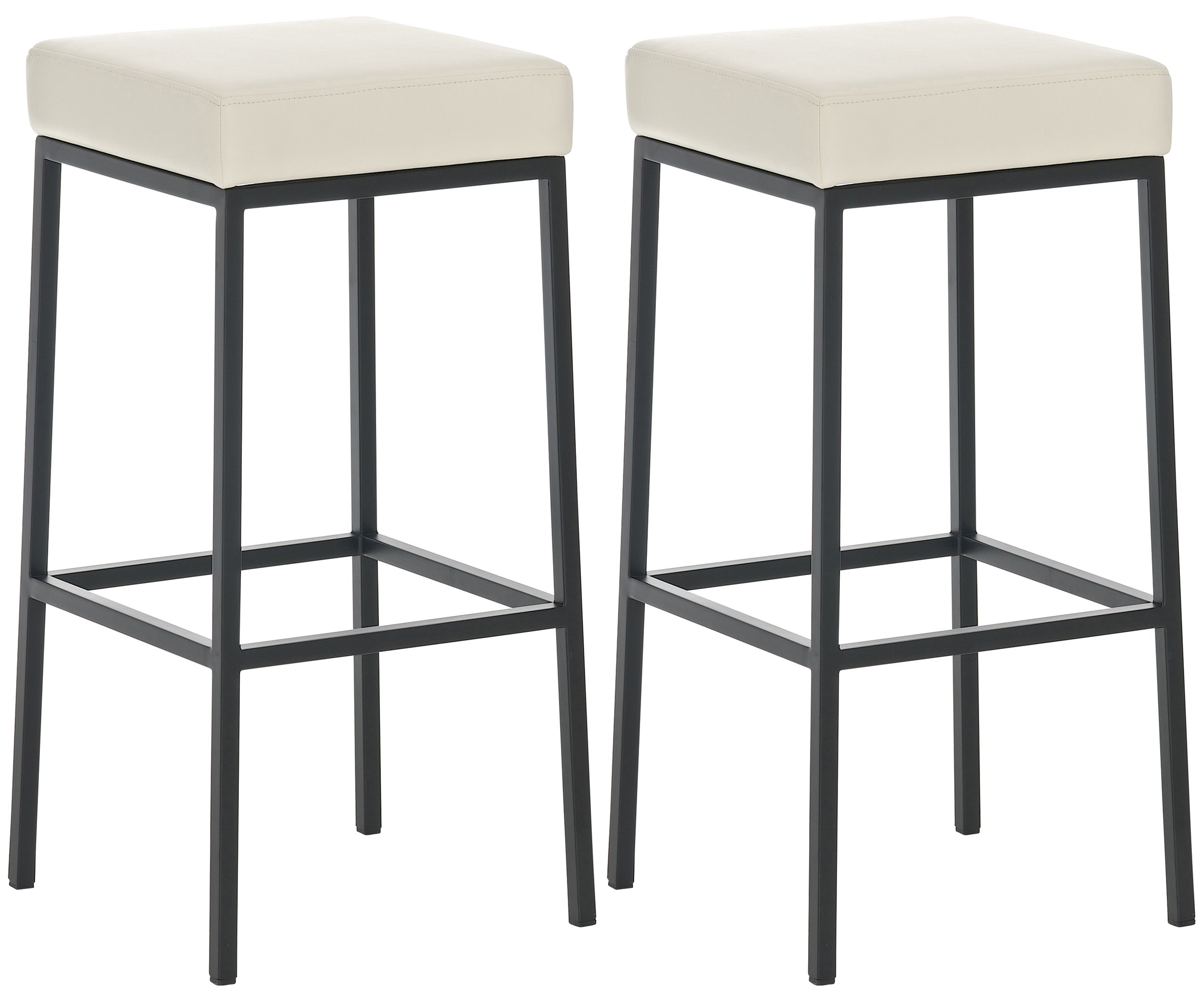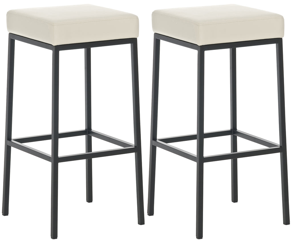 Lot de 2 tabourets de bar avec repose-pieds design simple hauteur 85 cm en PVC crème et métal noir 10_0004378