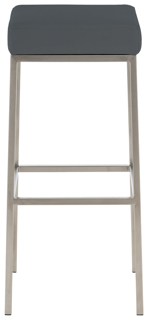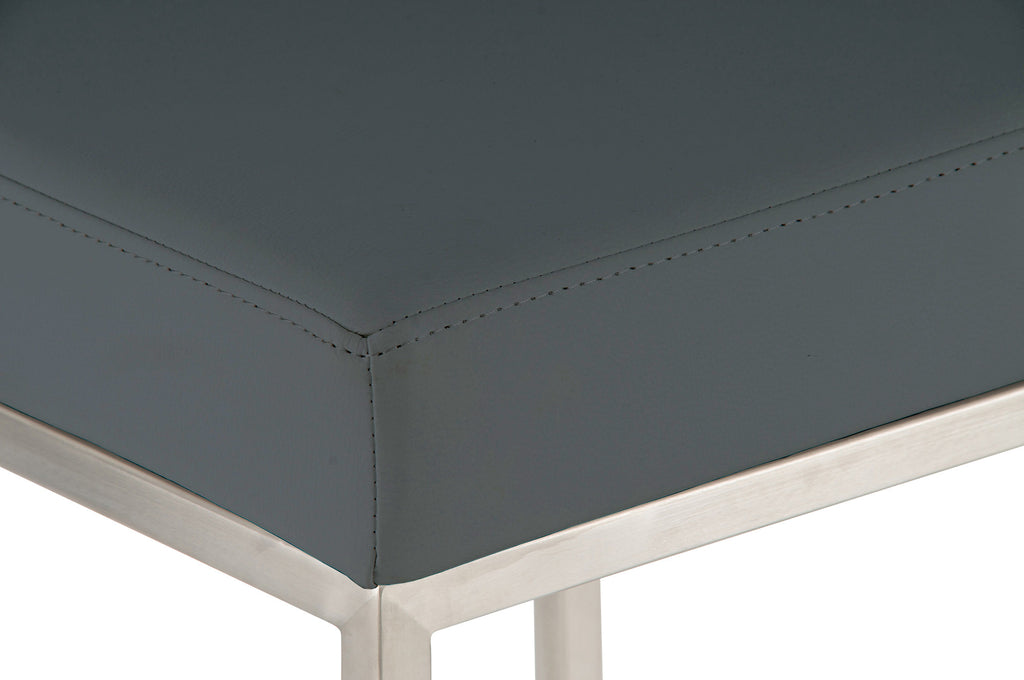 Lot de 2 tabourets de bar avec repose-pieds design simple hauteur 85 cm en PVC gris et acier inoxydable 10_0004375