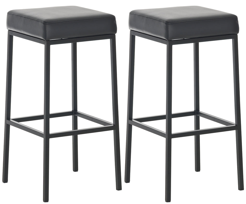 Lot de 2 tabourets de bar avec repose-pieds design simple hauteur 80 cm assise en PVC noir support en métal noir 10_0004367