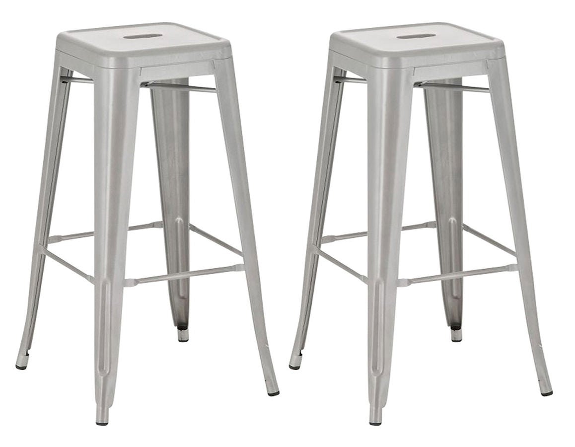 Lot de 2 tabourets de bar style industriel en métal avec repose-pieds gris TDB10118